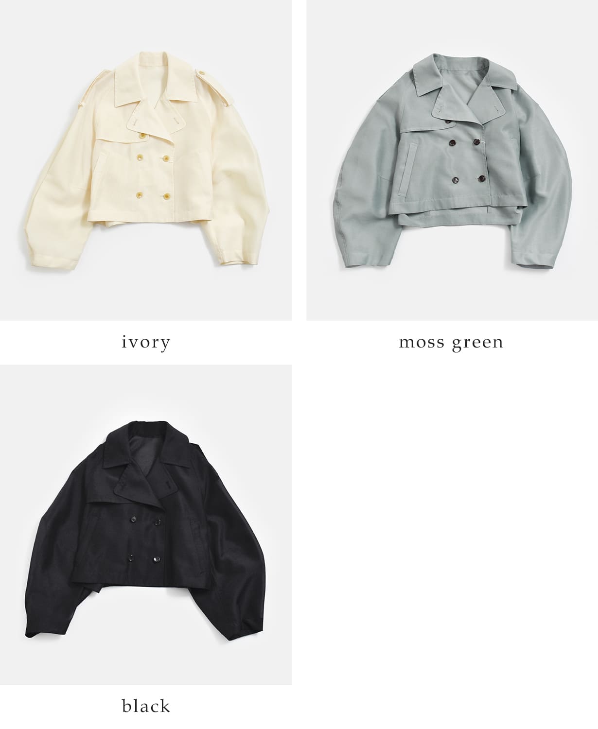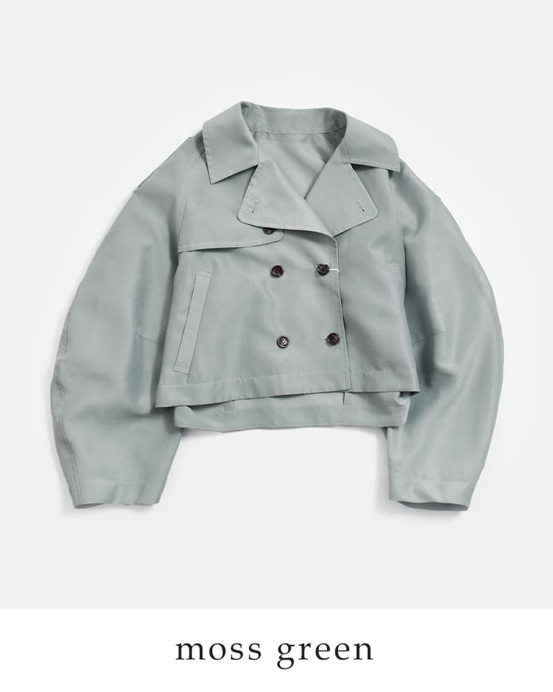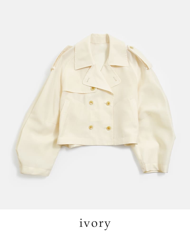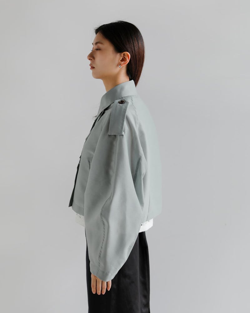 シアーによる抜け感と、トレンチディテールのきちんと感が共存したモードな雰囲気。軽やかでありながら落ち着きもあり、大人っぽく着られる一枚。