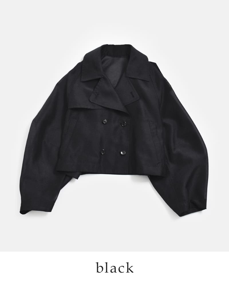 全体のバランスが取りやすいショート丈シルエット。パンツ・スカートどちらにも合わせやすく、スタイリングの幅を広げてくれる設計です。