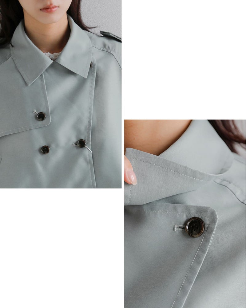 エポーレット(肩章)付きでトレンチらしさを演出。