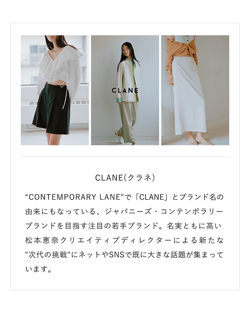 “CONTEMPORARY LANE"で「CLANE」とブランド名の由来にもなっている、ジャパニーズ・コンテンポラリーブランドを目指す注目の若手ブランド。名実ともに高い松本恵奈クリエイティブディレクターによる新たな"次代の挑戦"にネットやSNSで既に大きな話題が集まっています。