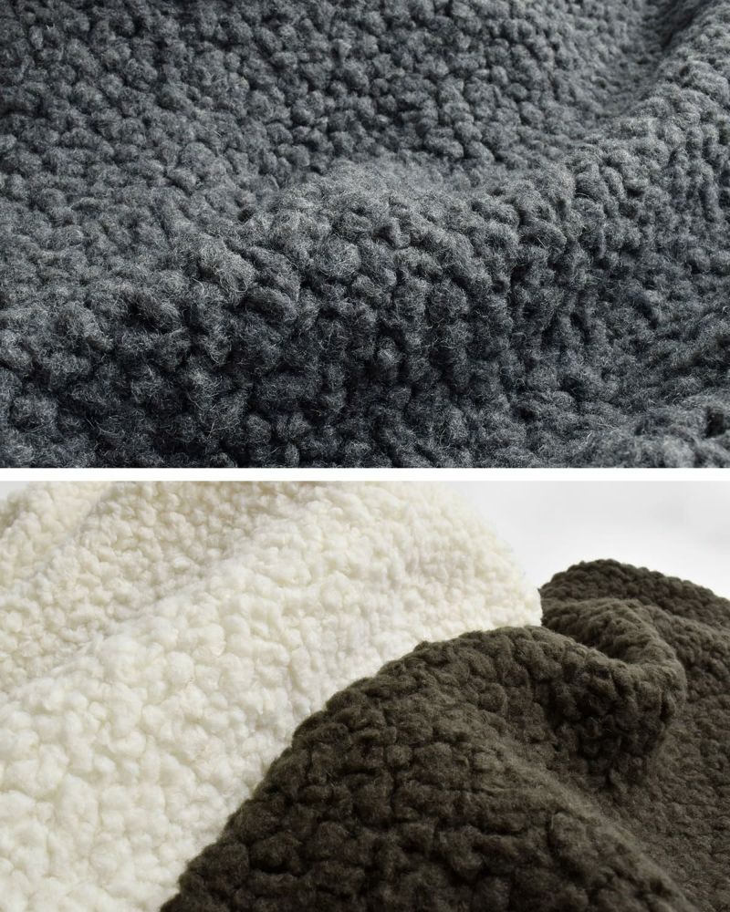 ウール混のボア素材で、保温性抜群。大粒のボアはふっくらとしていて、自然な光沢と滑らかな毛並みは上質な雰囲気です。