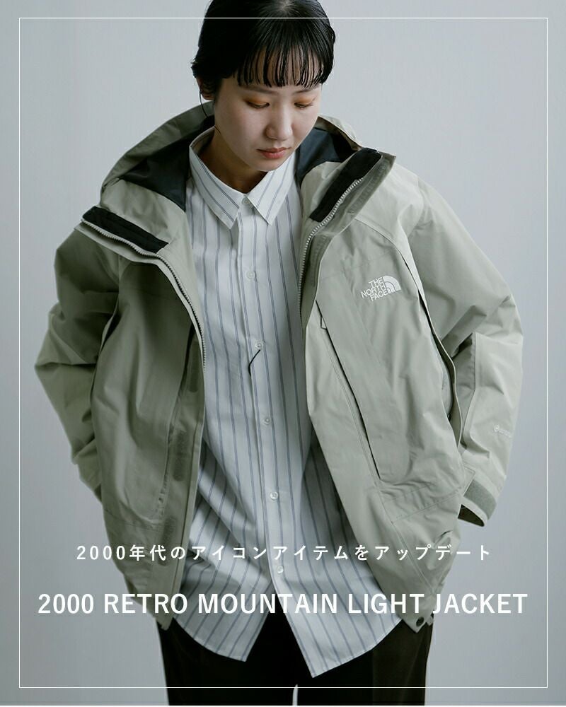 THE NORTH FACE(ノースフェイス)より、GORE-TEX レトロマウンテン ライトジャケット 2000 Retro Mountain Light Jacketのご紹介です。ePEメンブレンを採用したGORE-TEX PRODUCTS 2層構造。THE NORTH FACEの定番である肩部分の切り替えを取り入れた、アイコニックなデザインです。耐久性の高い70デニールナイロンを表生地に使用し、フロントはダブルフラップ仕様で防水性を高めています。内側の専用ファスナーでインナーを連結できるジップインジップシステム対応。トレッキングやキャンプのアウトドアのみならず、デイリーユースにも適した1着です。
