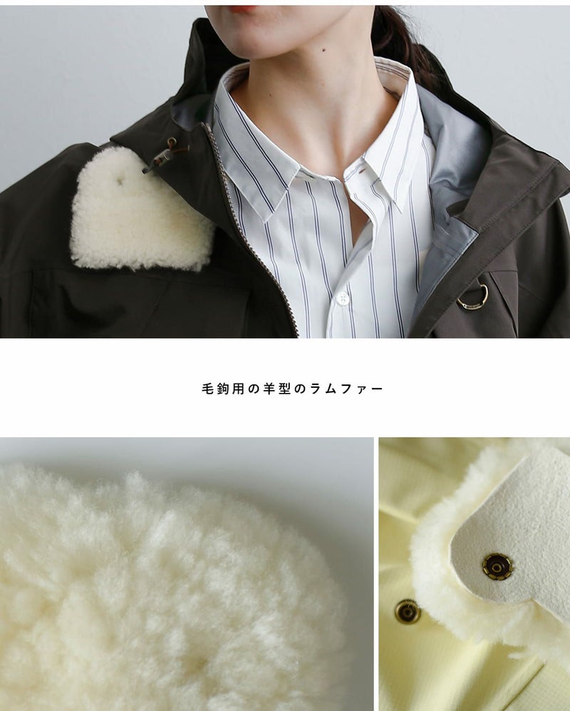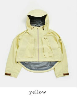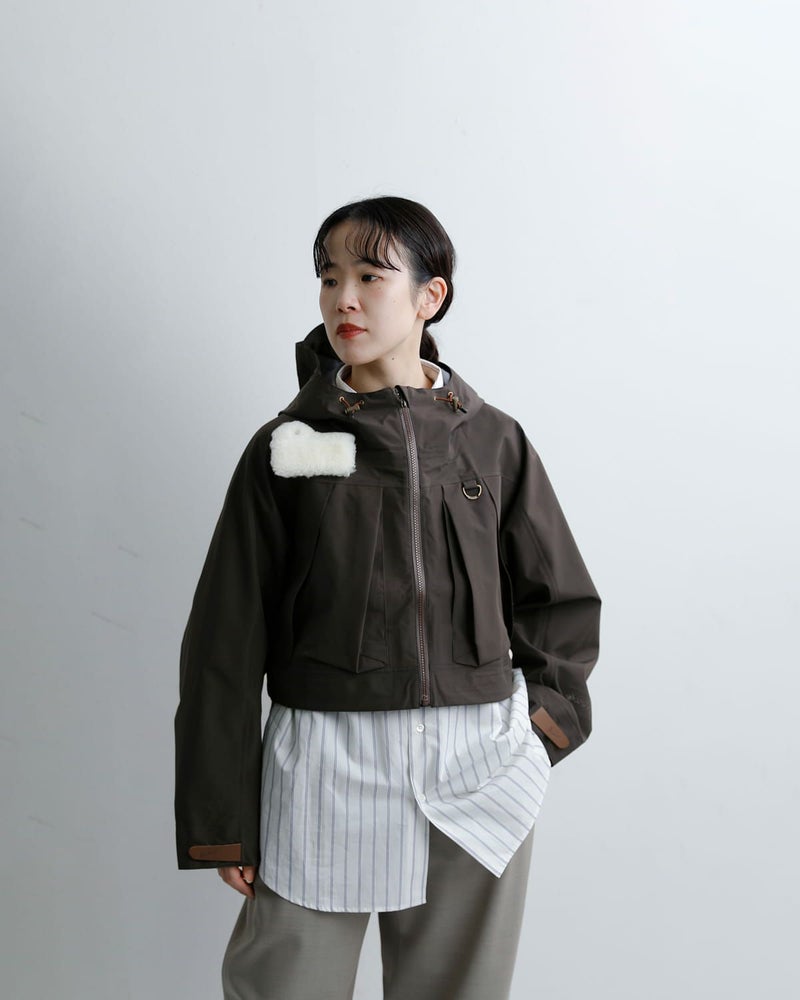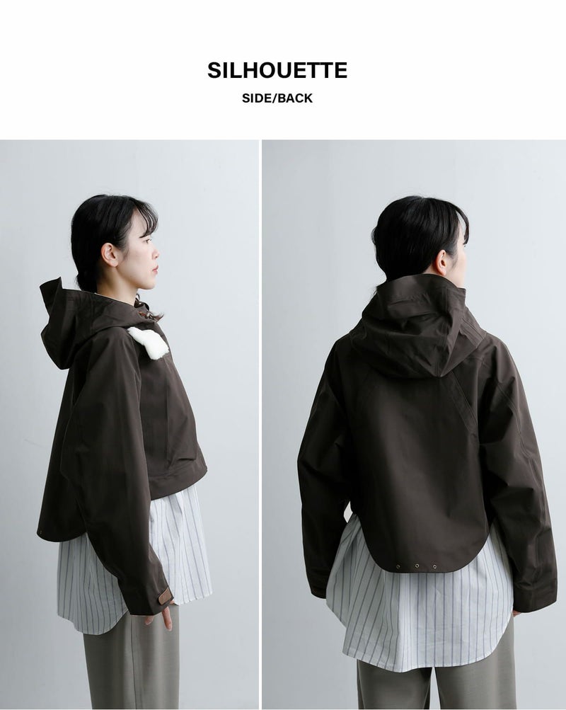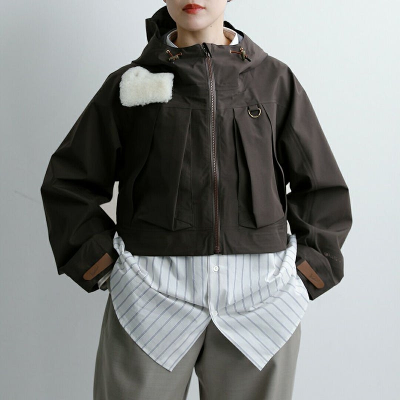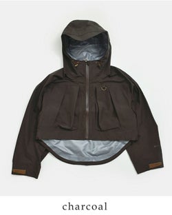 ウェーダー着用を想定したバランスのショート丈設計。ワイドパンツやボリュームのあるスカートとも好相性です。重心が上がり、スタイルアップ効果も◎。後ろが長めになり、ラウンドした裾が愛らしい雰囲気もプラスします。