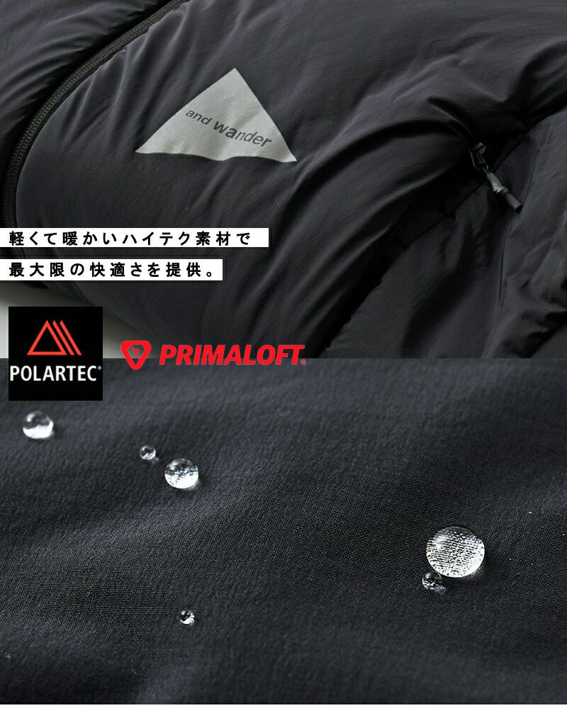 表地は20デニールのPERTEX QUANTUM AIR、中綿はPRIMALOFT Blackで水に濡れても暖かく、通気性があり、耐久性とロフト性の維持を可能にしたインサレーションを使用。