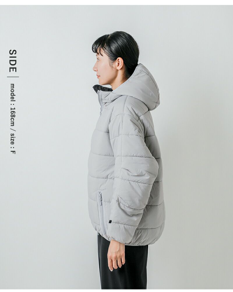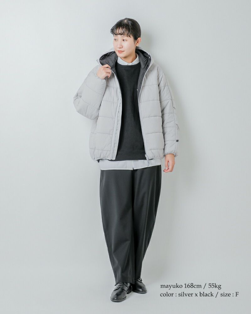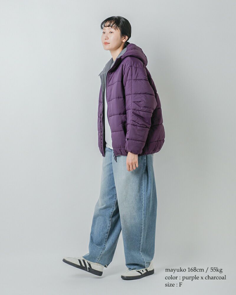 気分やスタイリングに合わせて2つの表情を楽しめるのが魅力です。さらに、ミリタリーディテールである前振りの袖やアクションプリーツによって動きやすさを確保。中綿にはプリマロフトを採用し、軽さと暖かさを両立しました。程よいボリューム感で、デニムと合わせてレトロなムードを楽しんだり、モノトーンでまとめて都会的に着こなしたりと、幅広いスタイリングにマッチする一着です。