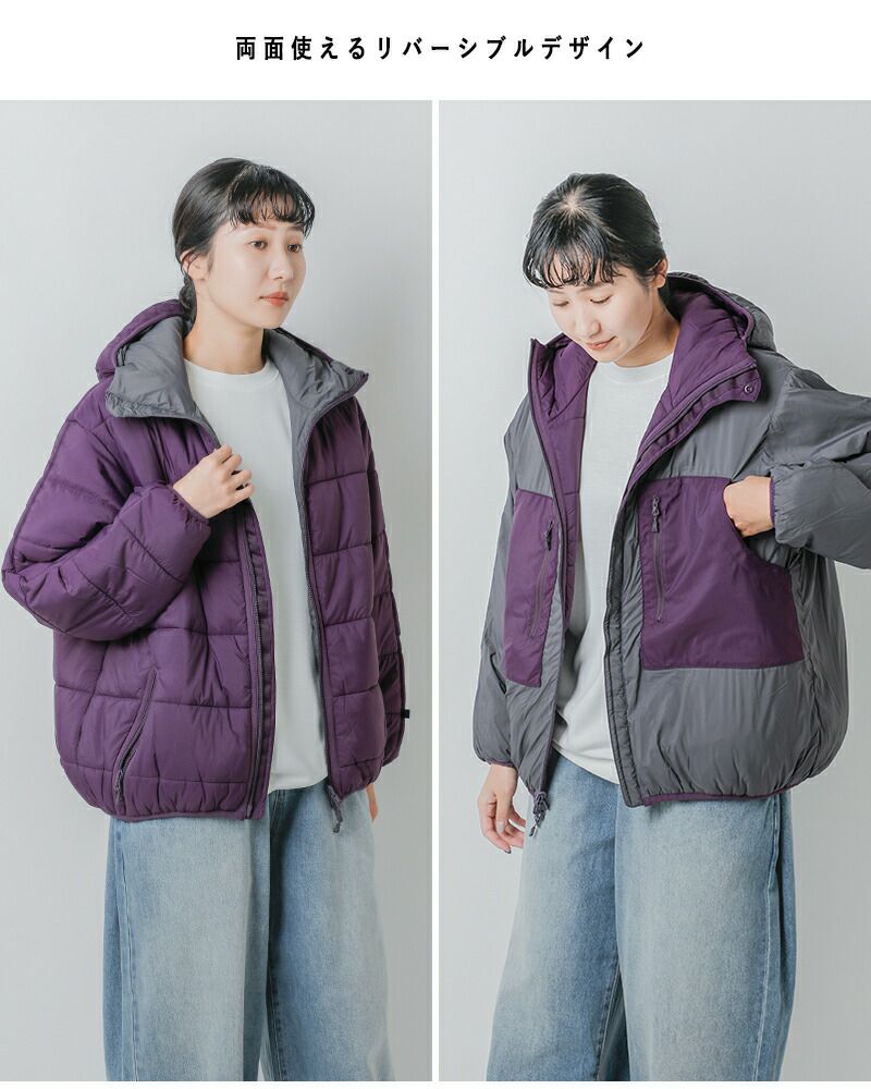 軽やかな着心地と洗練されたデザインを兼ね備えたリバーシブル仕様の中綿ジャケット。高密度タフタ素材を使用し、ソフトな風合いと環境に配慮した撥水加工で、タウンユースからアウトドアまで幅広く活躍します。表裏を入れ替えるだけで年代の違うファッションアイテムに早変わり。