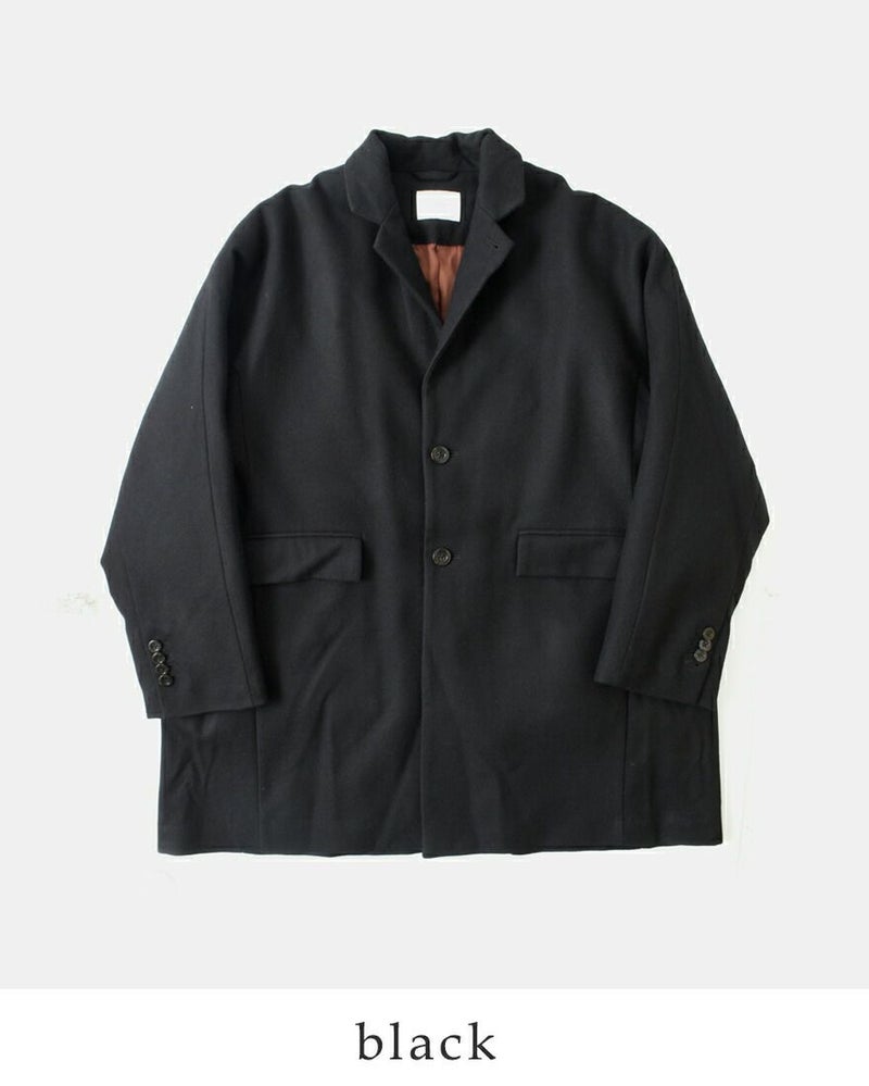 袖口を深くとったドルマンスリーブを採用しているため、厚手のセーターなどの上に着ても脇まわりがもたつきにくい他、様々な体型の方に自然に馴染みます。背中側にはセンターベントが入り、歩きやすいつくりになっています。
