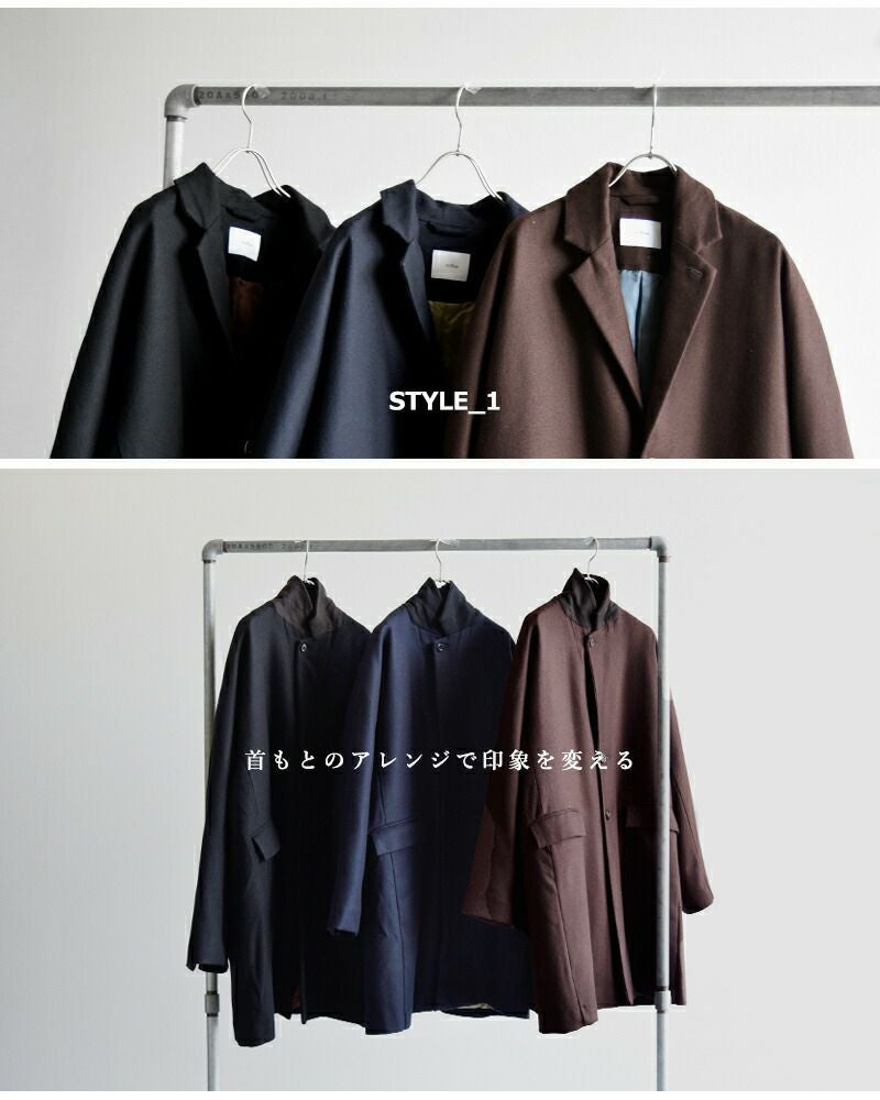 このとおり襟のスタイルを変える事で、コーデや気候に合わせて様々なスタイリングで楽しんでいただけます。