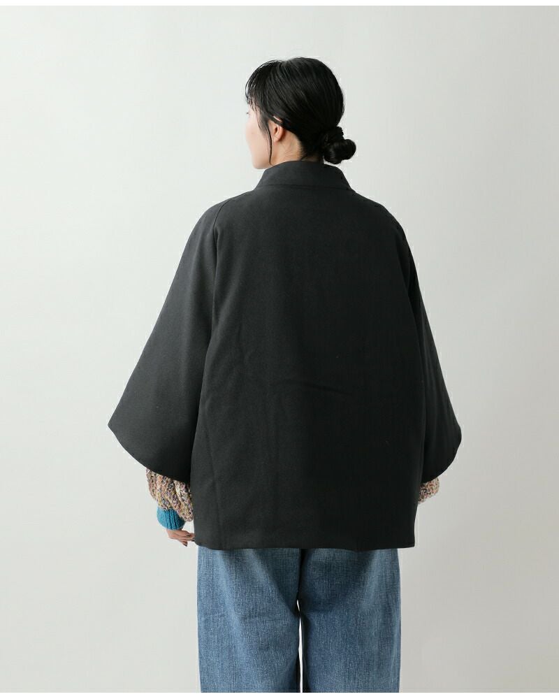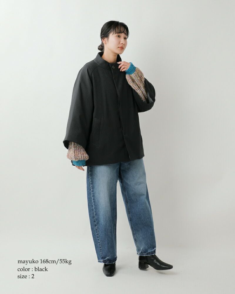 身頃と袖がそれぞれやや短めでゆったりとした作りなので、手袋などの冬小物を合わせやすく、ボリュームのあるニットの上からでもストレスなく羽織れます。