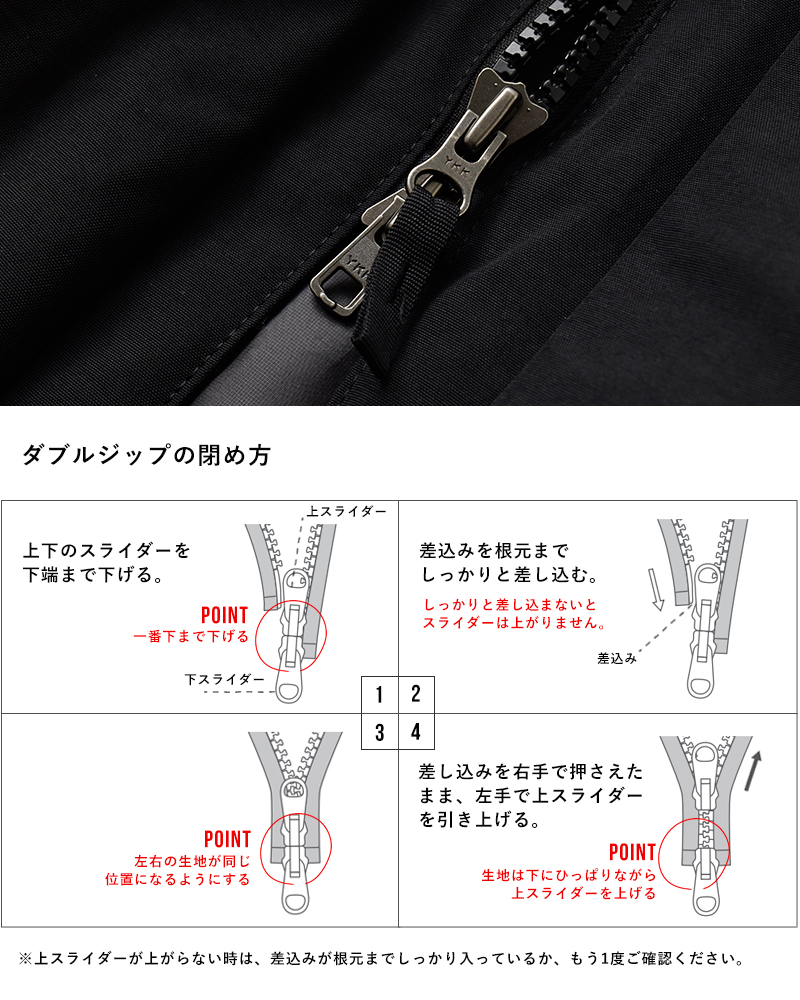 ・フロントには、テープとジップが配され、どちらでも開閉できるダブルフラップ仕様です。 ・裾にはアジャスタードローコードを配置し、お好みで調節が可能です。