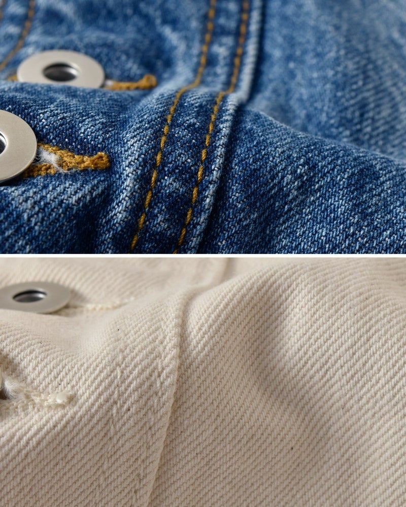 アイボリーとブルーの2色展開。アイボリーの柔らかな抜け感と、ブルーの本藍が映える深み。対照的な2色が、それぞれの個性を引き立てます。