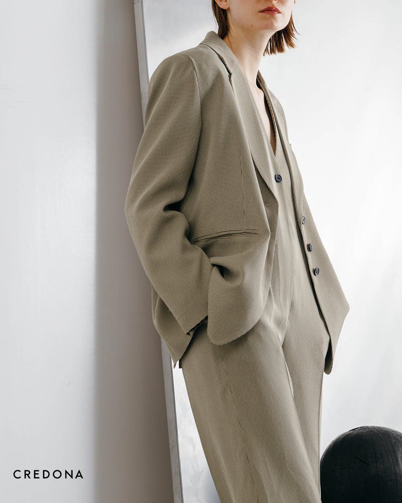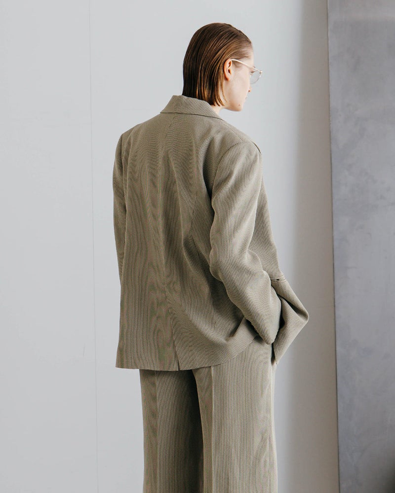 イギリスのヴィンテージスーツに見られるクラシカルなミニチェック柄をベースに、日本ならではの繊細な表現力で凹凸感のあるチェックジャガードへと仕上げました。
