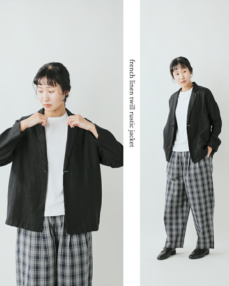 TRAVAIL MANUEL(トラバイユマニュアル)より、フレンチリネン ツイル ラスティック ジャケット をご紹介します。ドライタッチでナチュラルな風合いのフレンチリネンツイルを使用したジャケットです。「ラスティック」とは素朴な、飾り気のないという意味で、素材の持ち味を生かしたシンプルなデザインで完成されています。さらりとしていて軽く、さっと気軽に羽織れるので、ちょっとしたおでかけにもぴったり。春先のきれいめアイテムとして、重宝します。