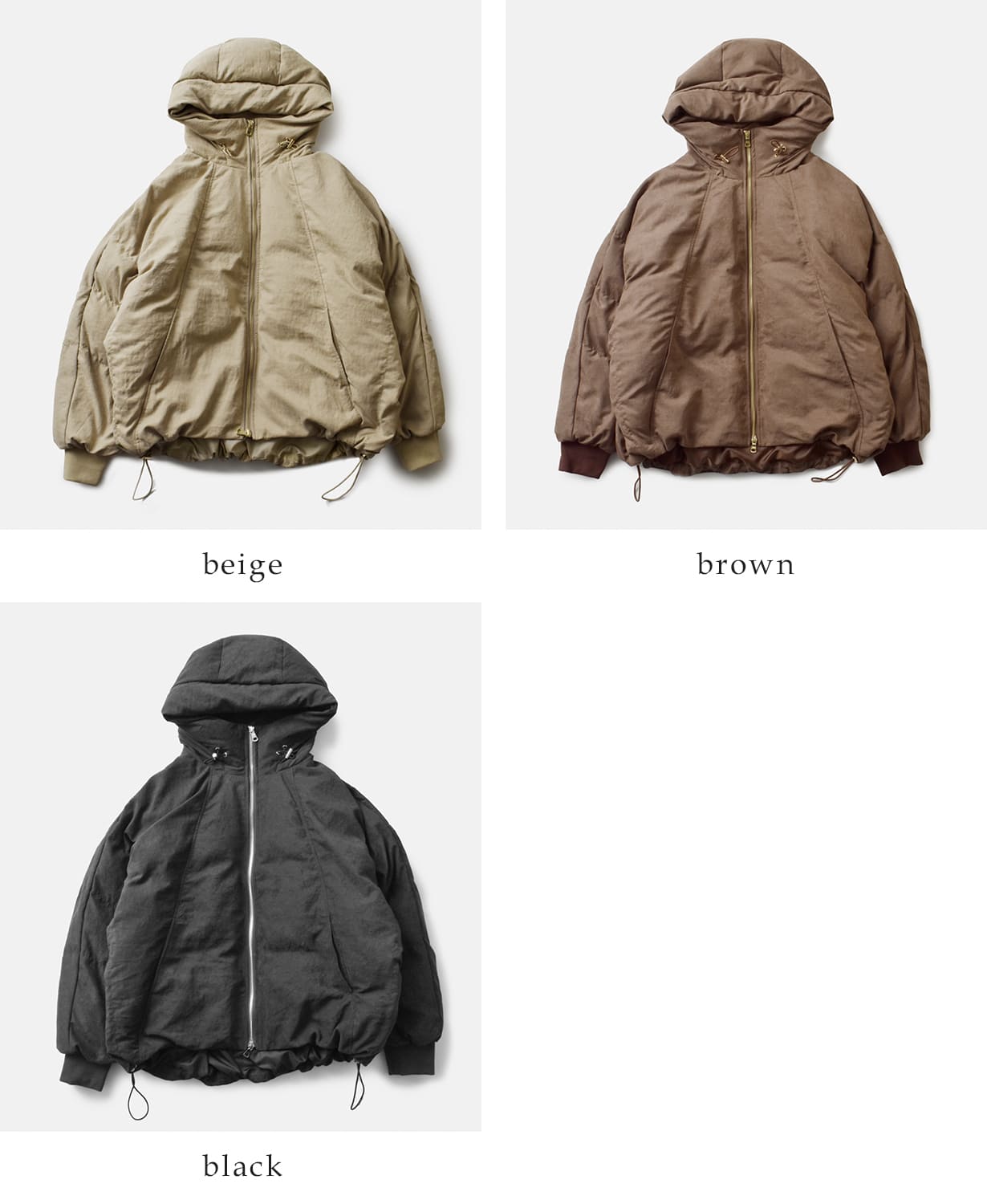 ボリューミーで洗練されたシルエットのジップアップコート