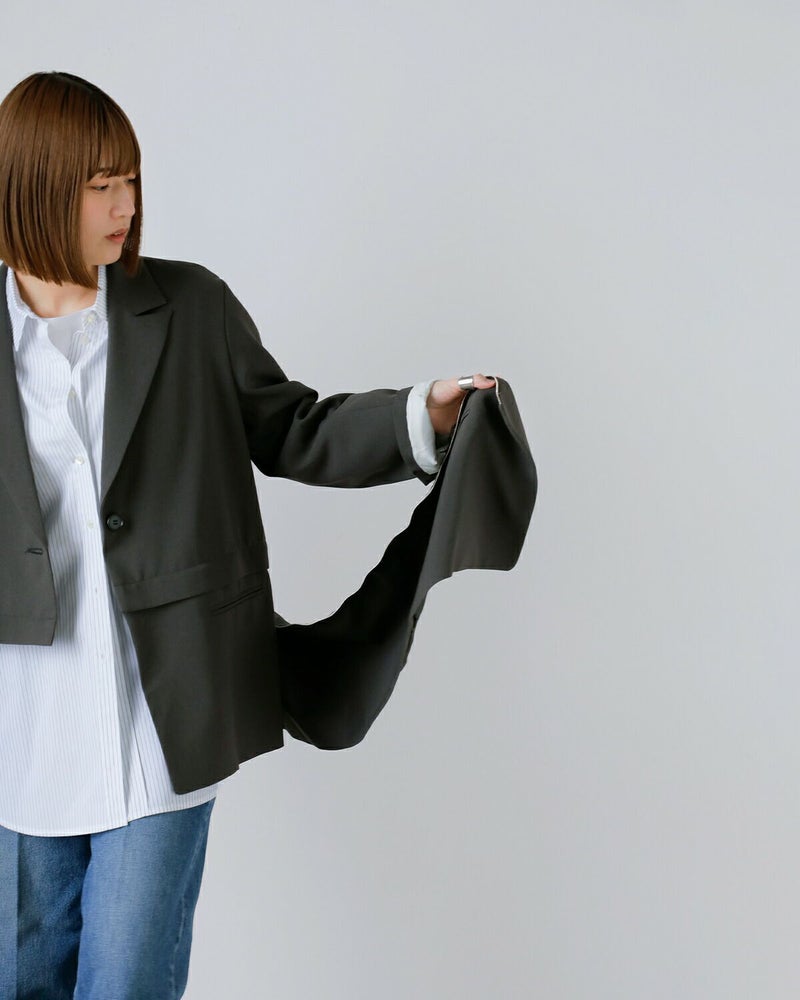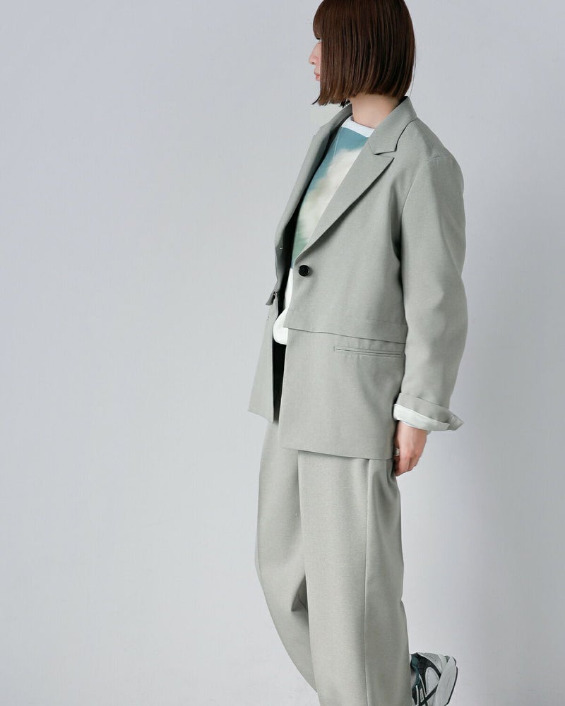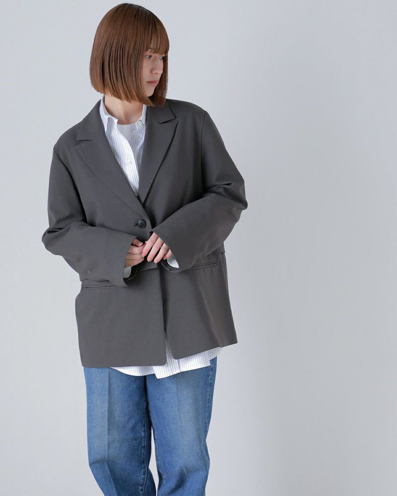 程よくゆとりのあるストレートシルエットが、体型を選ばずスタイリッシュな印象を与えます。ジャケットとしてのきちんと感はありながら、リラックス感のある着心地を実現。