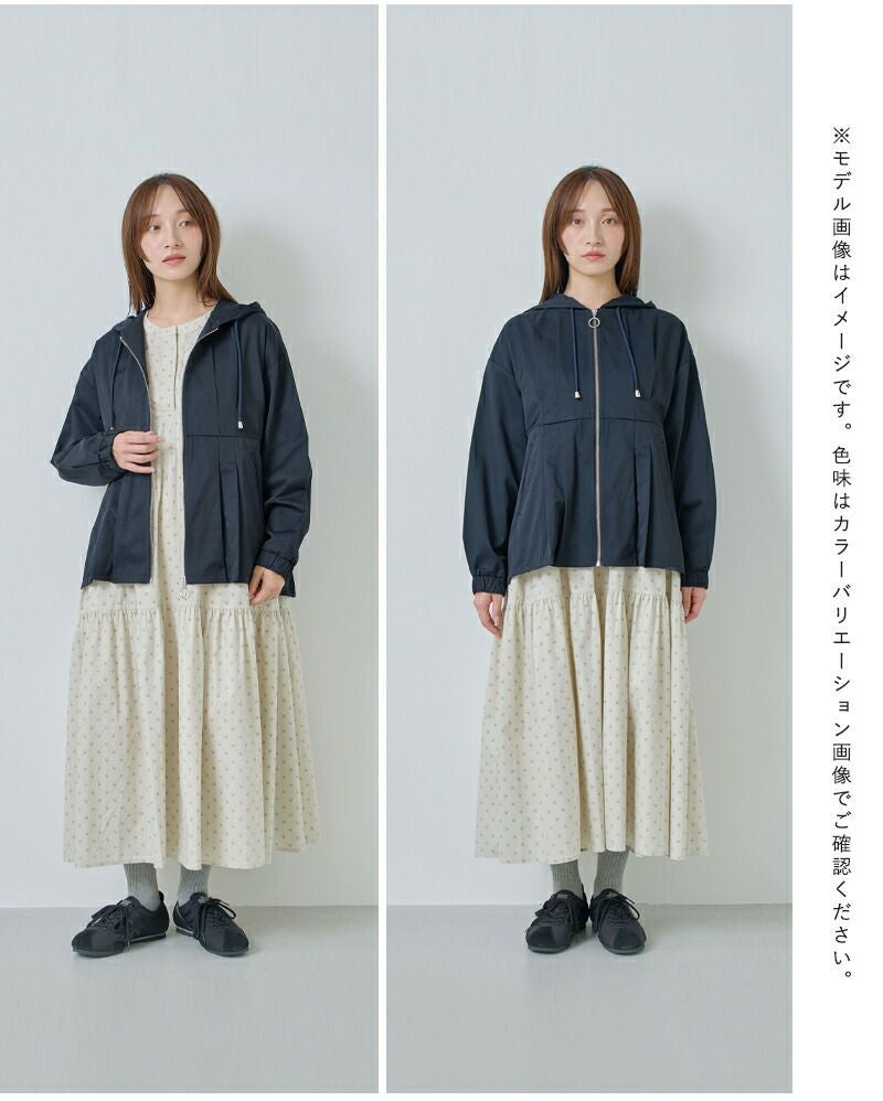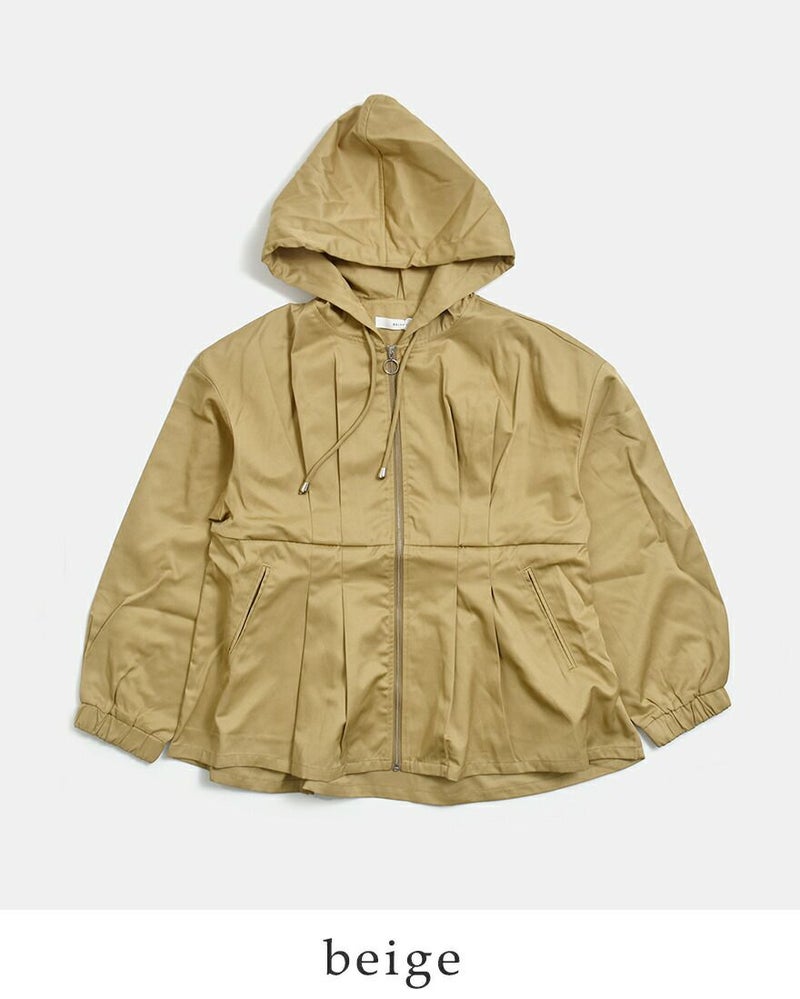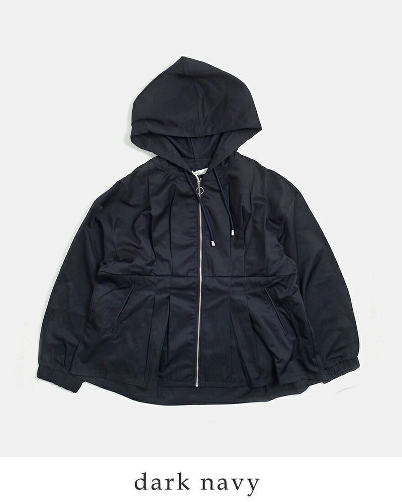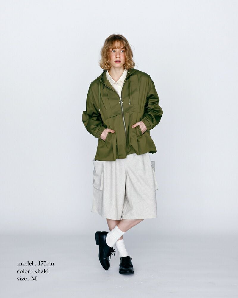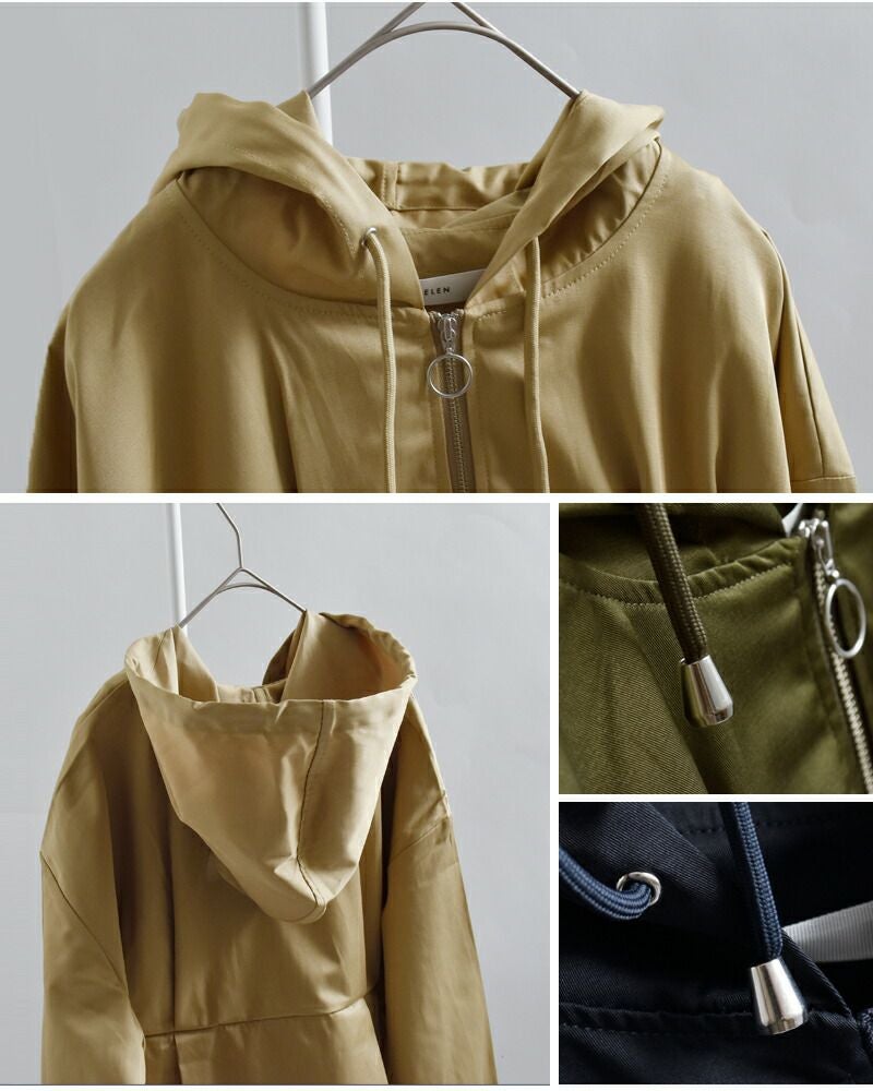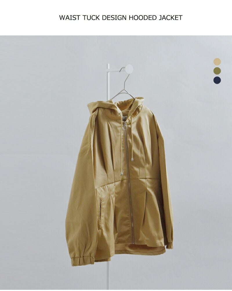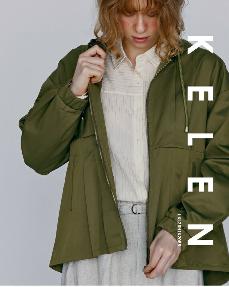 ラフに羽織れるフードジャケットに、ウエストタックでさりげないメリハリをプラスした、kelenらしいデザインアウター。