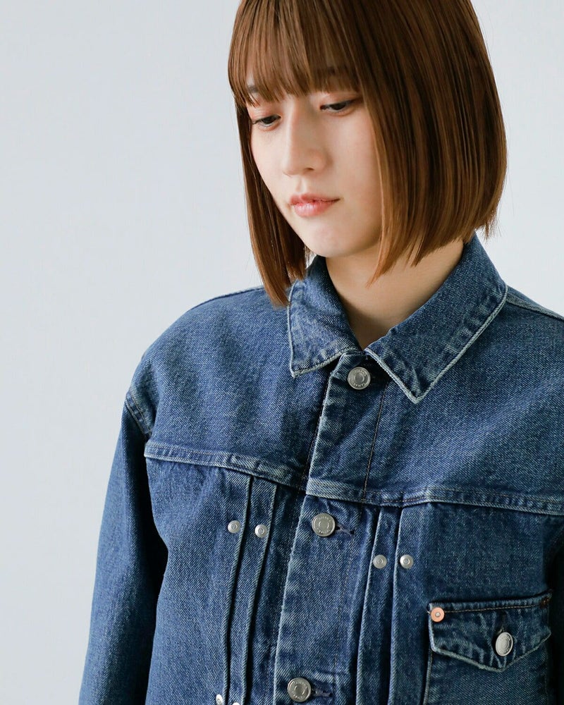 ヴィンテージデニムのクラシックな要素と、現代的な洗練さが共存するデニムジャケットです。カジュアルにも上品にも着こなせる、都会的な雰囲気を持ったアイテムです。