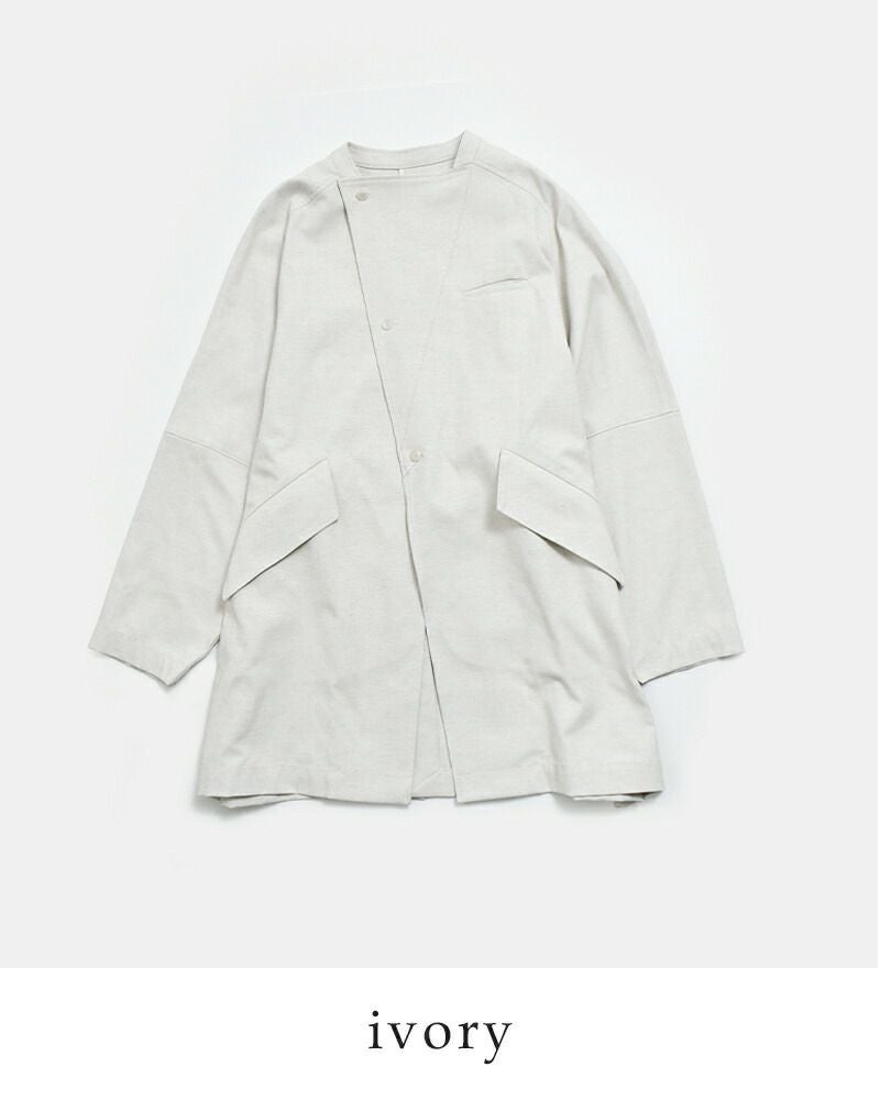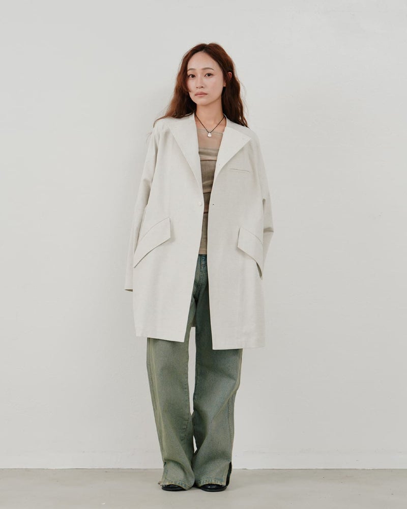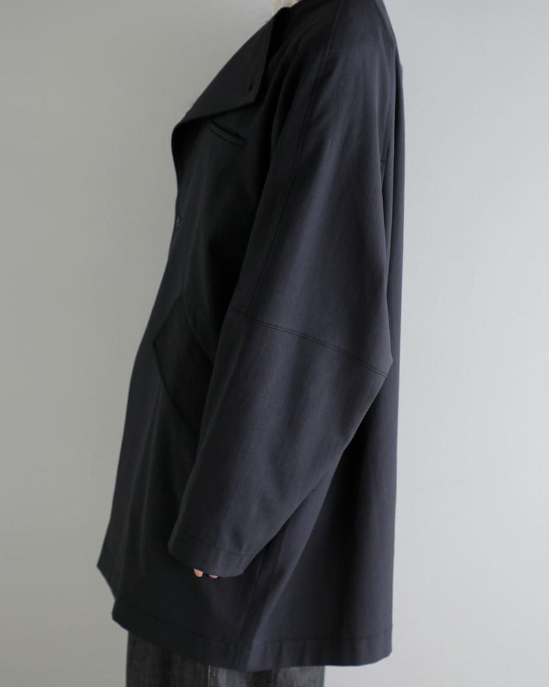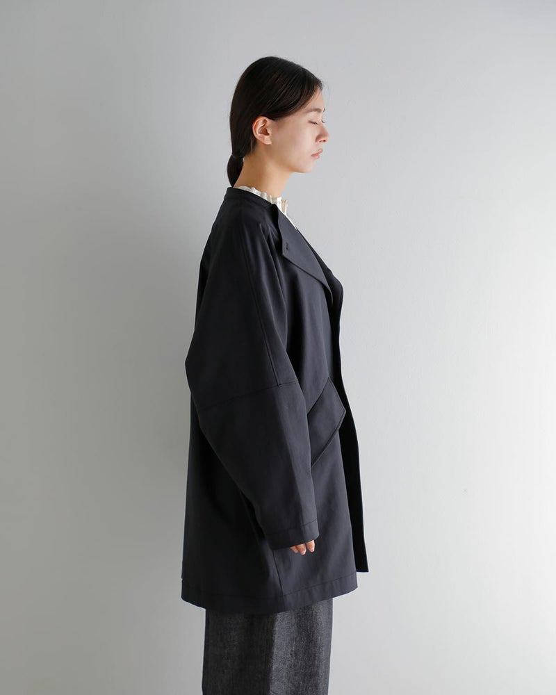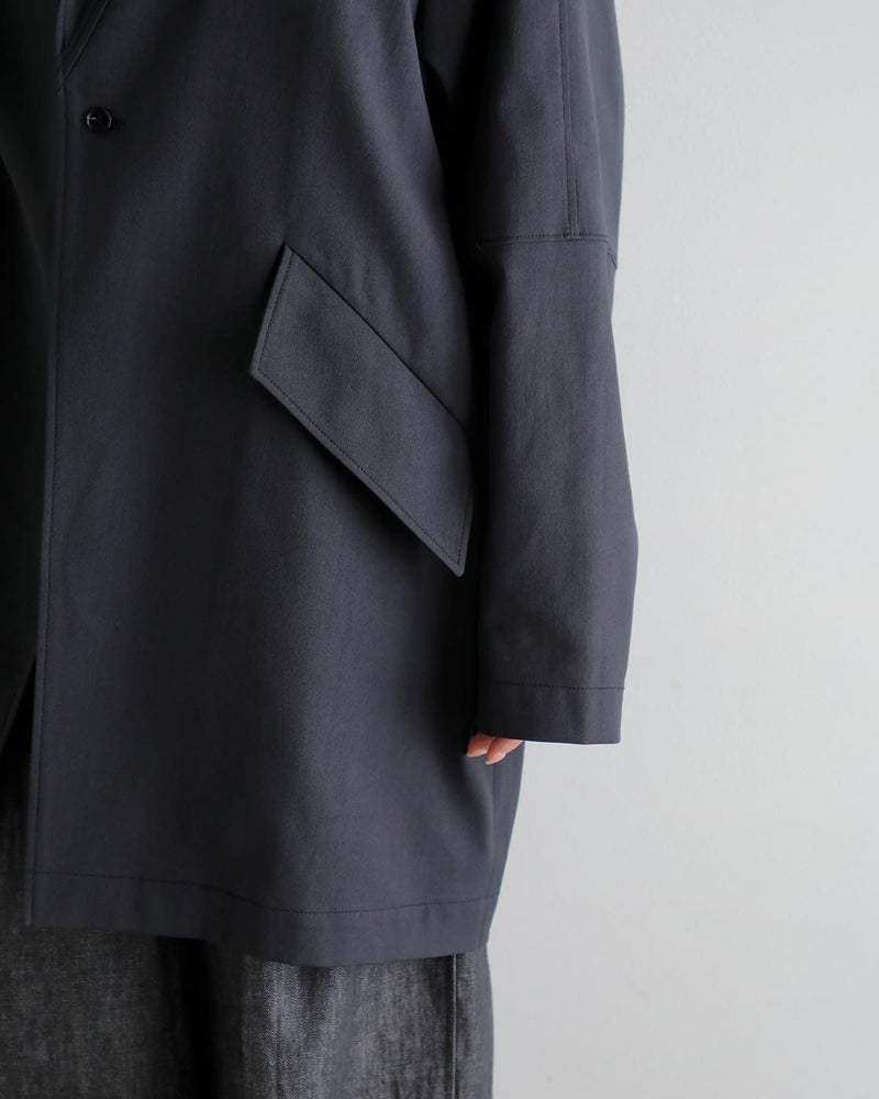 構築的なディテールが光る、ミニマルなライトアウター。直線的なフロントデザインとポケットデザインが、さりげない個性を演出します。