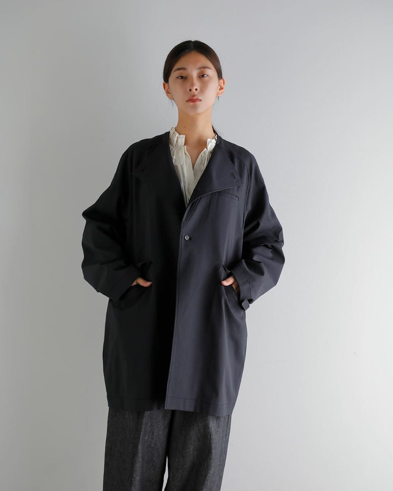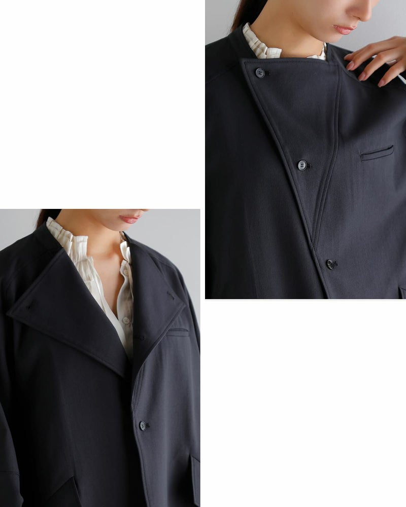 ラグランスリーブによる滑らかな落ち感と、程よいゆとりを持たせたシルエット。身体のラインを強調せず、自然な抜け感を演出するバランスに仕上げられています。