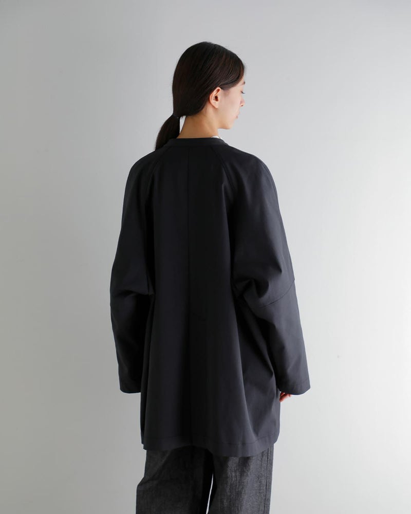 ラグランスリーブが生む滑らかな落ち感と、程よいゆとりが抜け感をプラス。東レのポリエステル機能糸[Sheltering dry]を使用して織られた吸水速乾、シワになりにくい生地を使用 軽やかで羽織りやすい、季節の変わり目にぴったりの一着です。