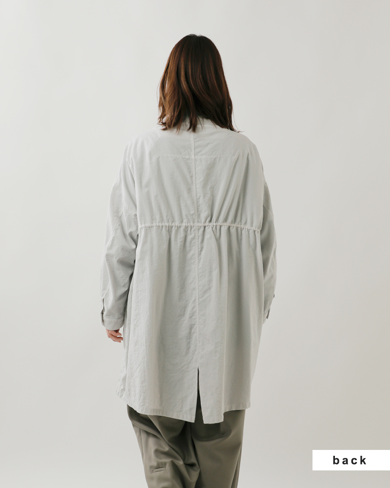 FIR MUM(フィル マム)からナイロンタスランオックスオーバーサイズボトルネックコートが届きました。さらりと羽織れて軽量、ほんのりシャリ感が心地いい軽快なアウターをお出かけのお供にぜひどうぞ♪