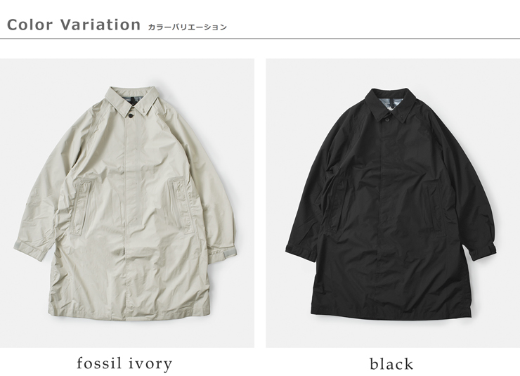 表地は20デニールのナイロンを使用することで、軽やかで柔らかな着心地。シームテープを張りながらもパッカリングを利かせた縫製を導入し、レインウエアでありながらヴィンテージ風のディテールに仕上げています。