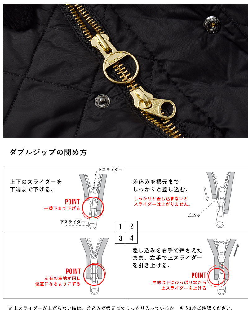 ダブルジップやチンタブで、シルエットや着こなしを自由に調整可能。襟元を留めてコンパクトに、ジップを開けて軽やかに。クラシックなデザインに遊び心を加えた、バブアーならではの機能美です。