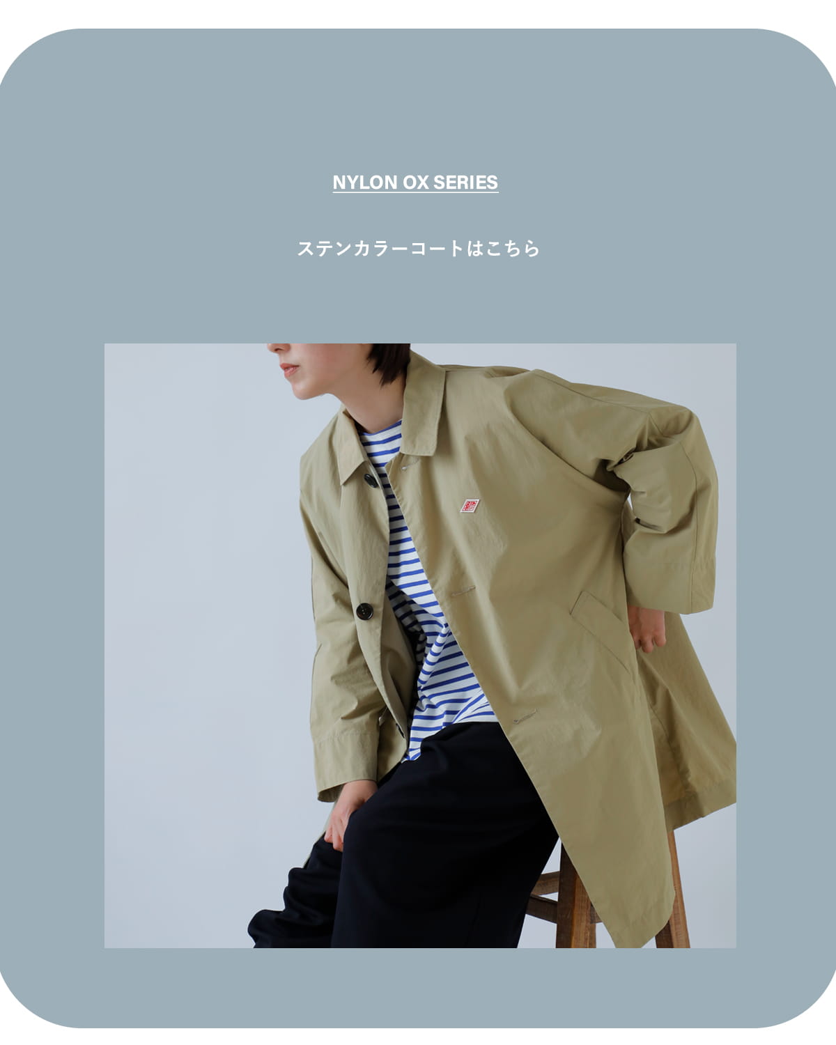 DANTON(ダントン)より、ナイロンオックス ドルマンスリーブ ジャケットのご紹介です。端境期に欲しくなる1枚でさらっと着用できるナイロンのショートコート。ナイロンジャケットはアウトドアなイメージですが、襟付きにボタン留め、袖をドルマンスリーブにすることでカジュアルなスタイルにマッチします。洗いをかけたナイロンオックス生地で、雰囲気のある表情豊かな生地に仕上がっています。