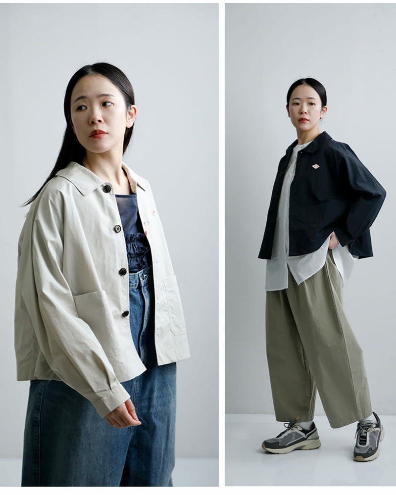 季節の変わり目軽量ライトアウターナイロンオックスドルマンスリーブジャケット DANTON ダントン ナイロンオックス ドルマンスリーブ ジャケット dt-a0652tny-26ssレディース 2026ss新作 春夏ライトアウター スプリングジャケット バックギャザー 軽量 ショート Aライン 襟付き ゆったり ドロップショルダー【海外出荷不可】