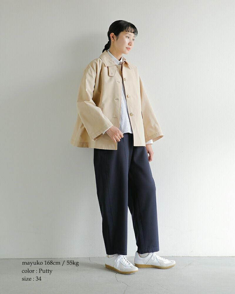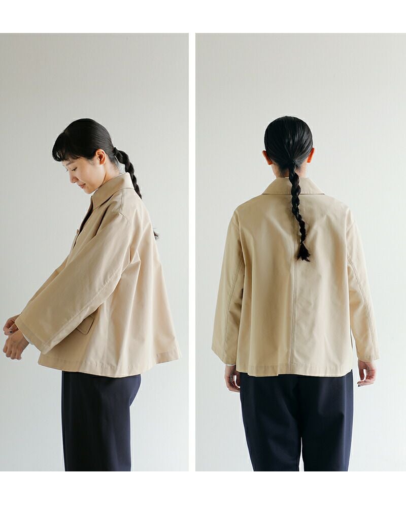 ショート丈のすっきりとしたシルエットに、ゆとりあるボックスラインを組み合わせることで、動きやすさと上品さを兼備。ワイドパンツやスカートとも好相性で、オン・オフ問わず着回せます。