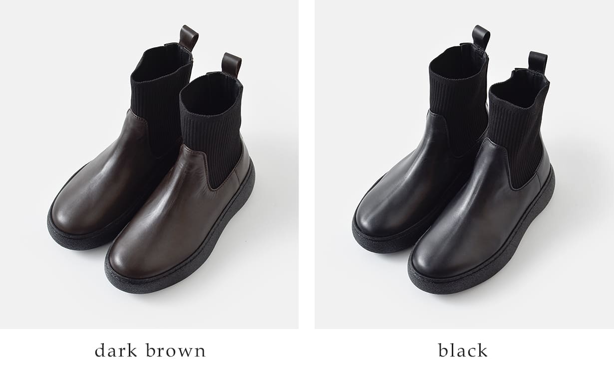 装いに旬なアクセントを添えるアンクルブーツ。ミニマルなフォルムに、リブ編みと上質なレザーのコントラストが絶妙なアクセントを添えます。すっきりとしたシルエットながら、ボリュームのあるソールがバランスを整え、幅広いスタイルにも合わせやすいデザインです。履き口にはプルストラップを配し、スムーズな着脱が可能。耐久性とグリップ力に優れた WRAP SOLE を採用し、デザイン性と機能性を兼ね備えています。フィット感の高いリブ仕様で、快適な履き心地と大人の品格を足元にもたらす一足です。