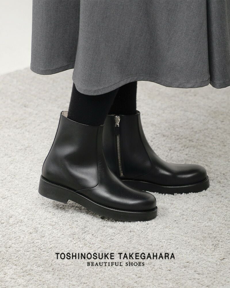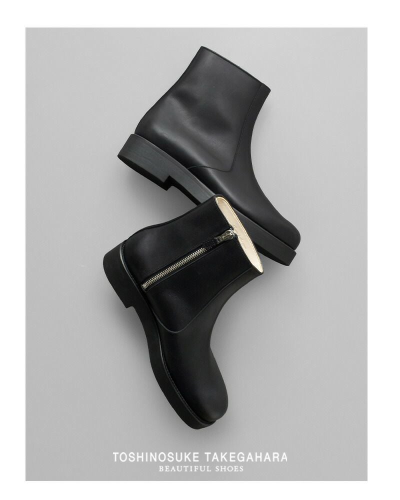 BEAUTIFUL SHOES(ビューティフルシューズ)よりステアレザー サイドジップ ブーツ “SIDE ZIP BOOTS”のご紹介です。シンプルなフォルムのサイドジップブーツ。無駄を省くことで素材の良さが際立ち、スタイリッシュなラインがより強調されています。またスマートながらも程よくボリュームを持たせたラストが、締め付け感の少ない快適な履き心地を生み出します。ソールにはクッション性と耐摩耗性に優れたオリジナルソールHARDNESS 50を使用しています。サイドジップが着脱しやすく、かつ、さりげないアクセントになっています。合わせ方次第でカジュアルにも、キレイ目にも活躍する、さまざまなシーンで足元に高級感をプラスしてくれる一足です。
