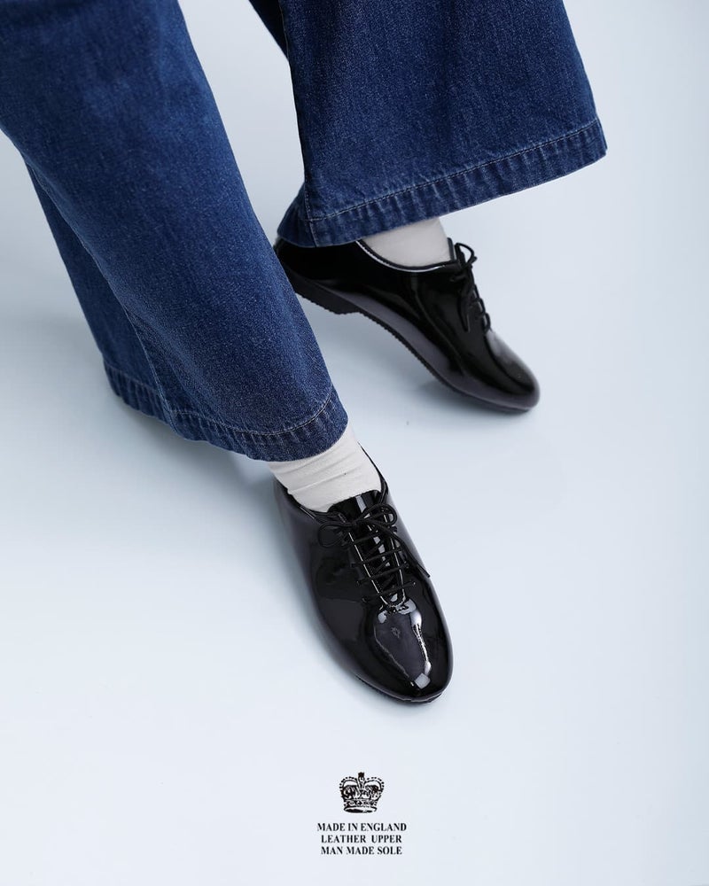 CROWN(クラウン)より、パテントジャズダンスシューズのご紹介です。ダンスシューズならではの丈夫で快適な履き心地。光沢感が魅力的なパテントレザーで、クラシカルな一足に仕上げています。フェミニンやきれいめコーデにはもちろん、ソックスとあわせてカジュアルに履きこなすのもお洒落なデザイン。型崩れに強く、替え靴として携行するのにもオススメです。