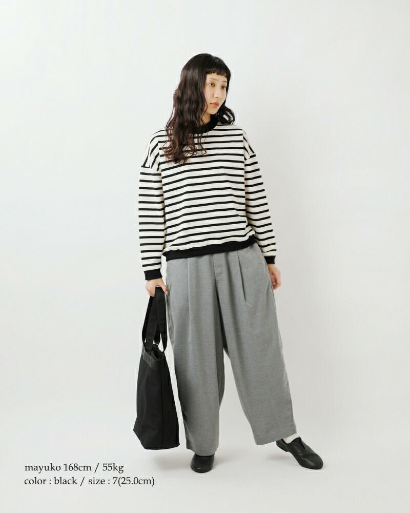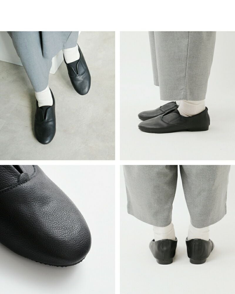 フラットソールで足が疲れにくいつくり。つま先やかかとに芯材を使用せず仕上げているため、柔らかく軽い履き心地も魅力です。