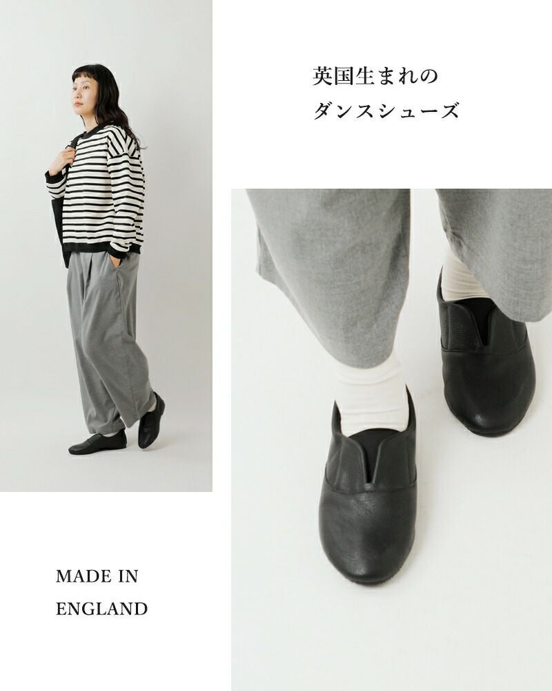 英国ノーザンプトンの老舗ダンスシューズメーカー CROWN(クラウン)より、レザー フラット ジャズ シューズ elastictongueのご紹介です。ダンス用に作られた、定番人気のレザーフラットシューズ。スタイリッシュなデザインがファッションアイテムとしても支持されています。高級感のあるレザーは上品な足元を演出。普段使いしやすいデザインで、ワードローブの定番アイテムとして1つあると便利な1足です。