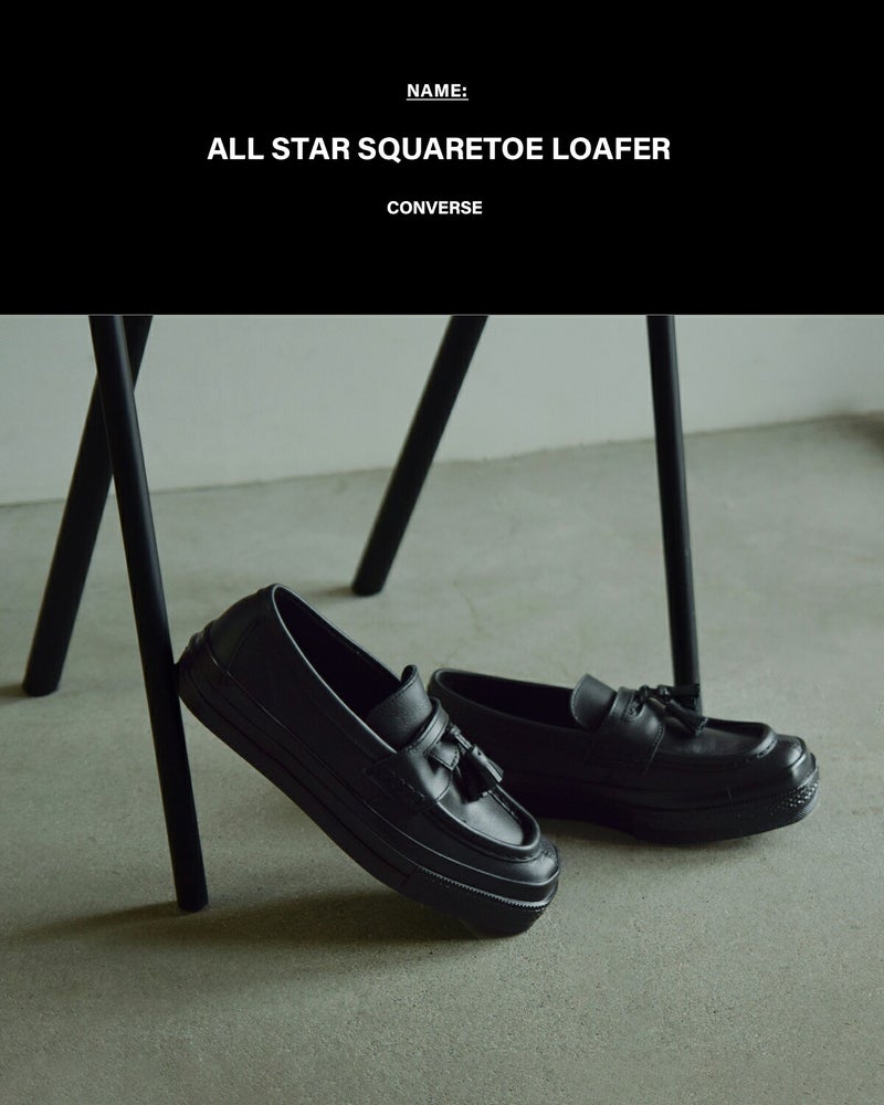 CONVERSE(コンバース)より、オールスタースクエアトゥローファーのご紹介です。スクエアトウのレザーシューズをモチーフにした「オールスター スクエアトウ」のパターンアレンジモデル。ローファーパターンを採用し、足元に程よい存在感を与えながら、どこか抜け感のあるバランスが魅力です。レザーシューズのような佇まいでありながら、履き心地はスニーカー仕様。長時間歩く日や通勤、お出かけにも頼れる快適さを実現しています。