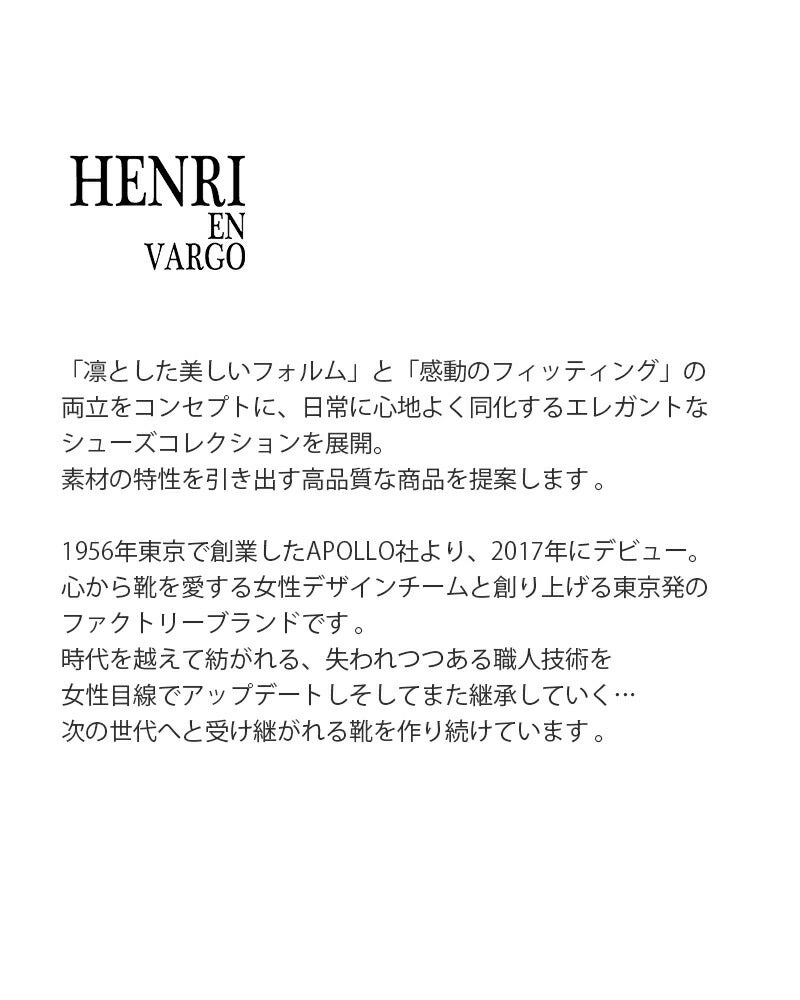 「凛とした美しいフォルム」と「感動のフィッティング」の両立をコンセプトに、日常に心地よく同化するエレガントなシューズコレクションを展開。素材の特性を引き出す高品質な商品を提案します。1956年東京で創業したAPOLLO社より、2017年にデビュー。心から靴を愛する女性デザインチームと創り上げる東京発のファクトリーブランドです。時代を越えて紡がれる、失われつつある職人技術を女性目線でアップデートしそしてまた継承していく...次の世代へと受け継がれる靴を作り続けています。