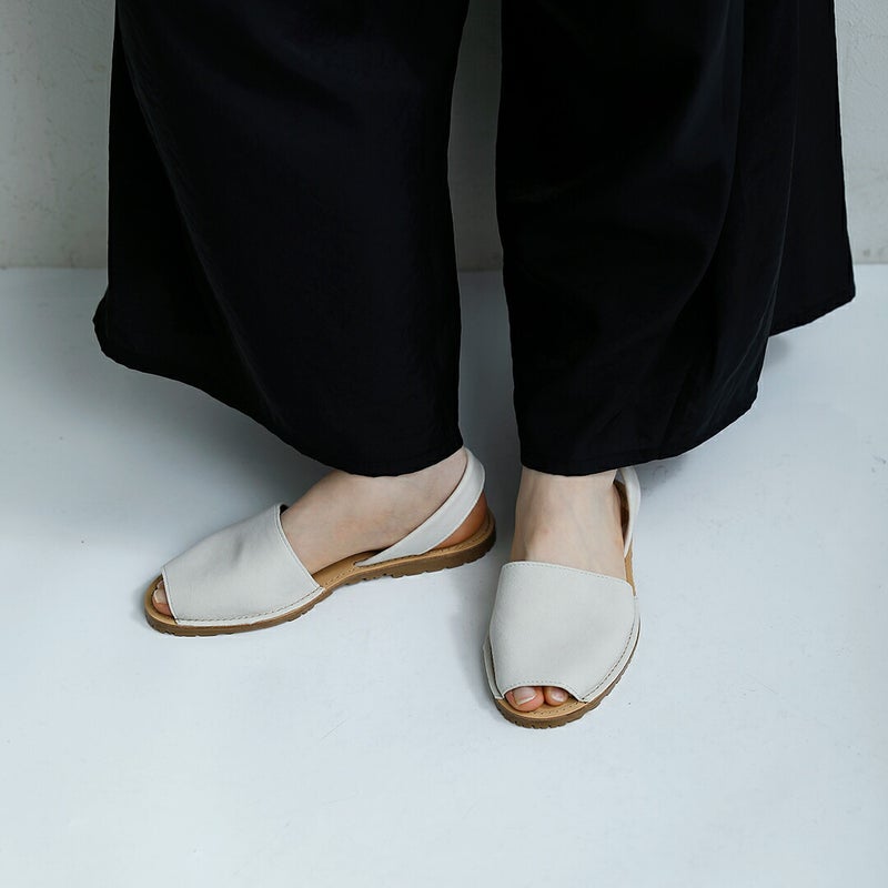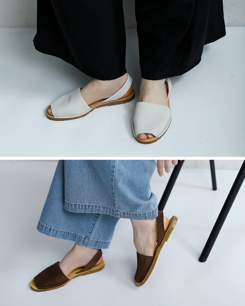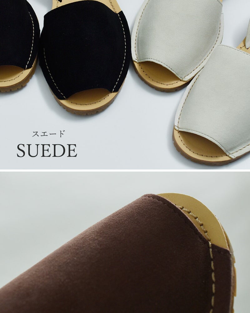 AVARCA MENORQUINA(アバルカメノルクイナ)より、スエードレザーバックストラップフラットサンダルのご紹介です。しっとりとしたスウェードレザーが雰囲気たっぷりの、ベーシックなメノルカサンダル。足の甲と踵をホールドし、安定感のあるシューズライクな履き心地が快適。メンズライクにも履けるデザインは、ほんの少し指が覗くオープントゥが今っぽく履きこなせるポイントです。