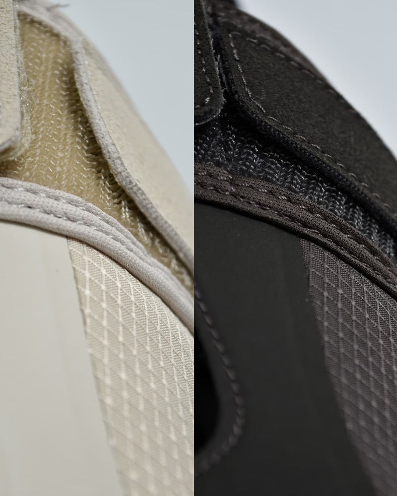 甲部は足全体をカバーしながら、調整可能な構造でフィット感を向上。踵部には、程よいホールド力を持つエラスティックバンドを搭載しています。