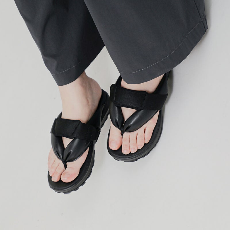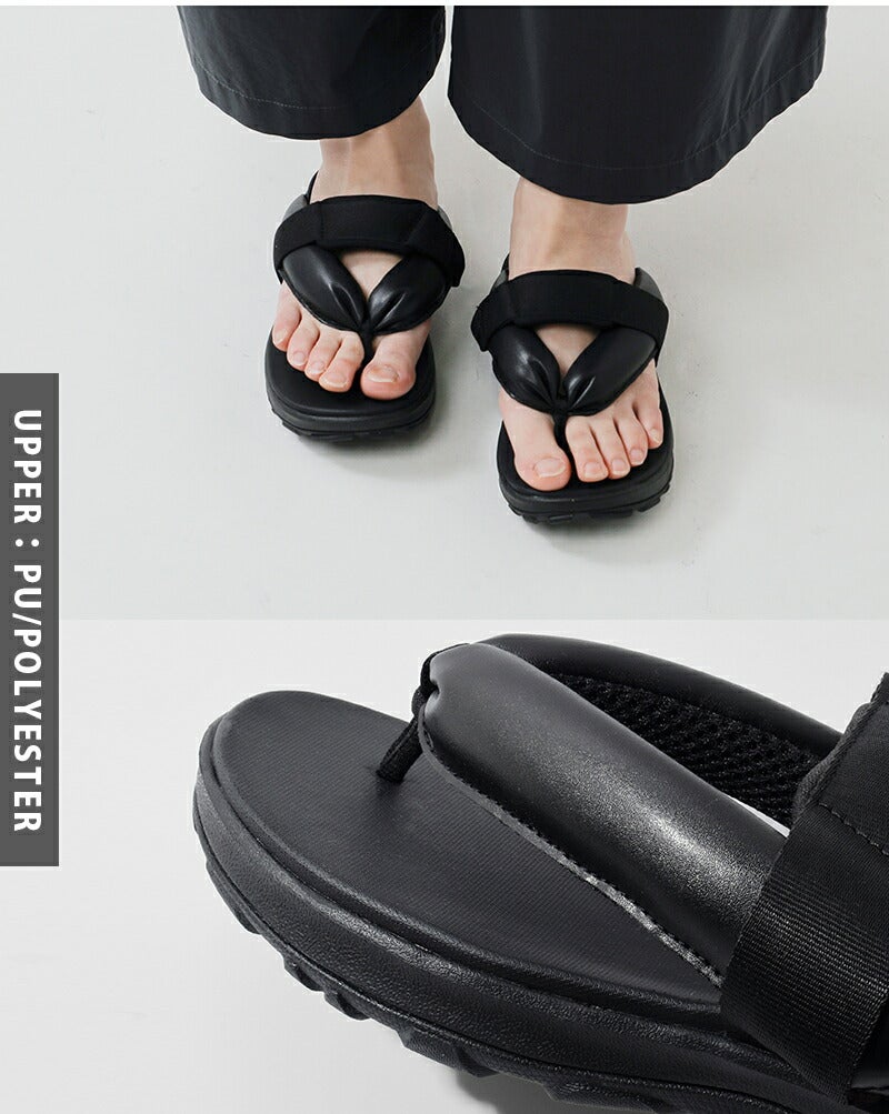 アッパーの鼻緒部分はPUレザーとメッシュのコンビネーション。鼻緒は肉厚でクッション性に優れており、裏がメッシュになっているので通気性もばっちり。