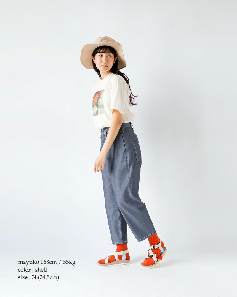 足の形にしっかりフィットするクロスベルト仕様。甲をしっかりホールドしつつ、程よいゆとりも確保します。 マジックテープ式で着脱もスムーズ&サイズ調整も自在です。