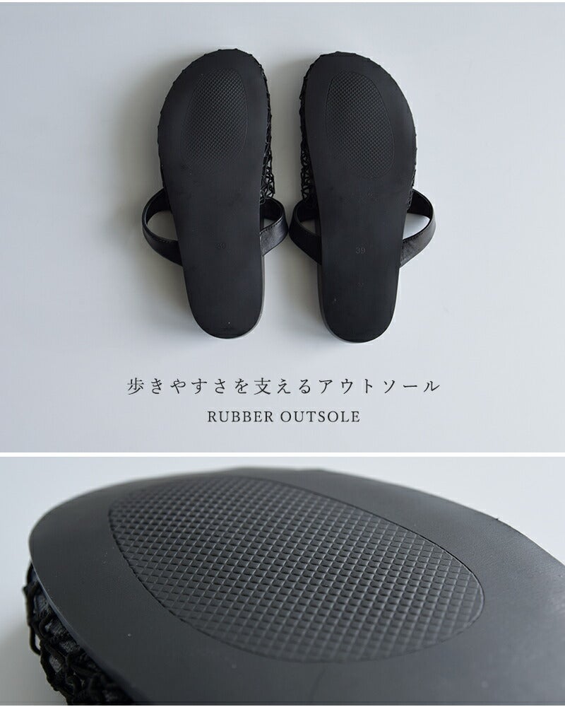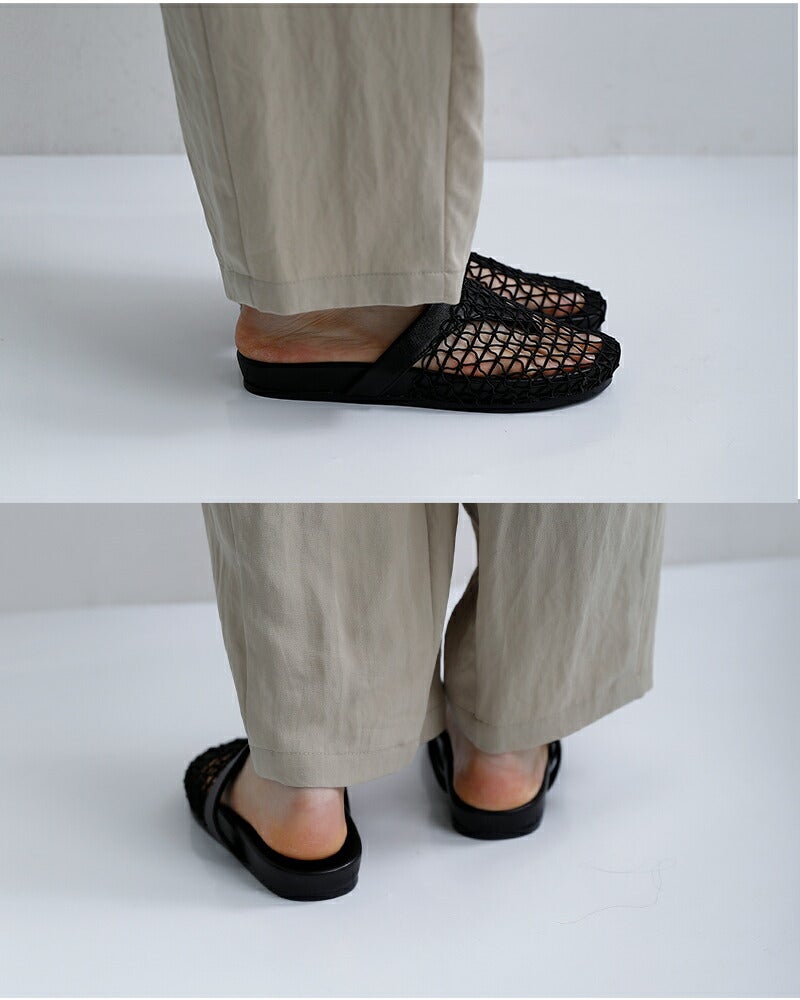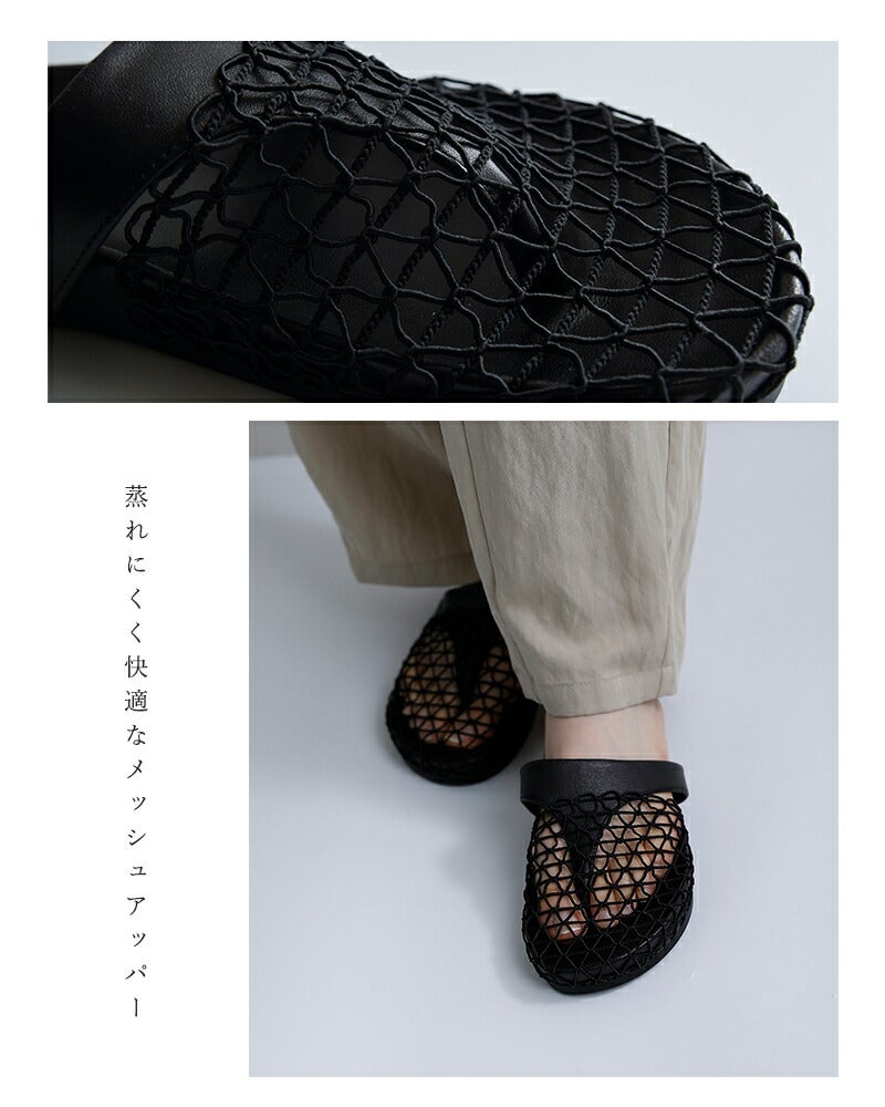 やわらかなシープレザーを使用し、メッシュデザインで軽やかに仕上げた一足。足元にほどよい抜け感を生み、春夏のスタイリングに涼やかな印象をプラスします。つま先を包み込みラフに履けるのに、レザーならではの上品さも兼ね備えているのが魅力。パンツにもスカートにも合わせやすく、デイリーコーデにさりげないアクセントを添えてくれるサンダルです。