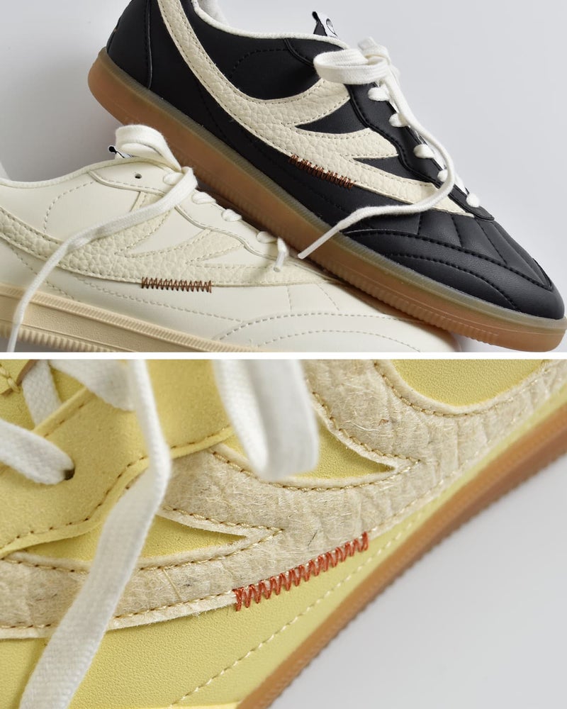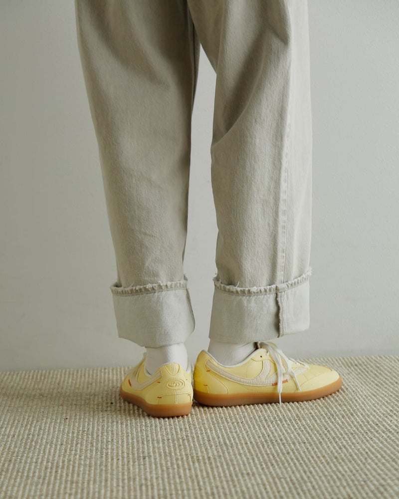 廃棄植物由来のリサイクル素材を使ったヴィーガンスニーカーです。コンパクトなシルエットにラバーアウトソールを合わせた、レトロなローテクデザイン。アッパーのステッチワークがユニークで、足元に個性を加えます。すっきりとしたフォルムが洗練された印象で、都会的でモダンな足元を演出します。