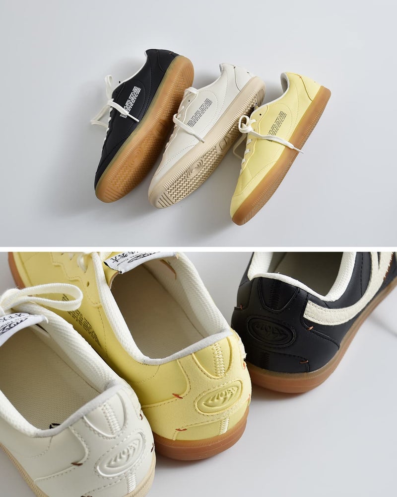 ラバーソールがアクセントになっており、レトロでクラシックな横顔を演出。サイドに刺繍ステッチが配置されており、可愛らしいアクセントになっています。