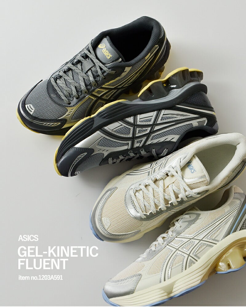 ASICS(アシックス)より、ゲルキネティック フルーエント スポーツスタイル ススニーカー GEL-KINETIC FLUENT をご紹介します。GEL-KINETIC FLUENT は、アーカイブのランニングシューズからインスピレーションを受け、その伝統的な影響を現代のテクノロジーで再構築したシューズです。アッパー構造には、2010年代のさまざまなランニングシューズの意匠を組み合わせたデザイン要素を取り入れている。伝統的なディテールを現代的なマテリアルで表現し、デザインに質感だけではない深みを加えている。ミッドソールは、FF BLAST PLUS ECOとScutoid GELテクノロジーで形成されており、足を蹴り出す際の反発性と着地時の衝撃緩衝性を高めるための高度な設計がされている。