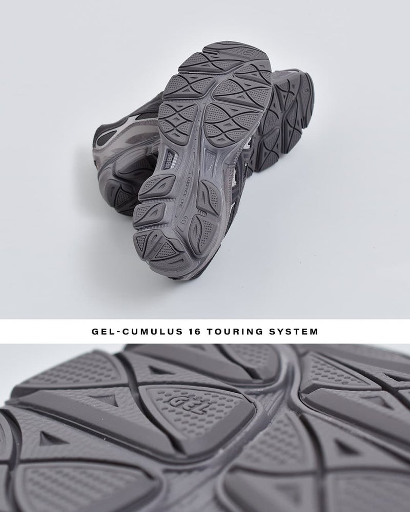 さらに、ソールにはGEL-CUMULUS 16のツーリングを採用することで、クラシックなアッパーデザインとのコントラストを演出。軽量フォームとGELテクノロジーの組み合わせにより、快適なクッション性と安定した履き心地を実現しています。