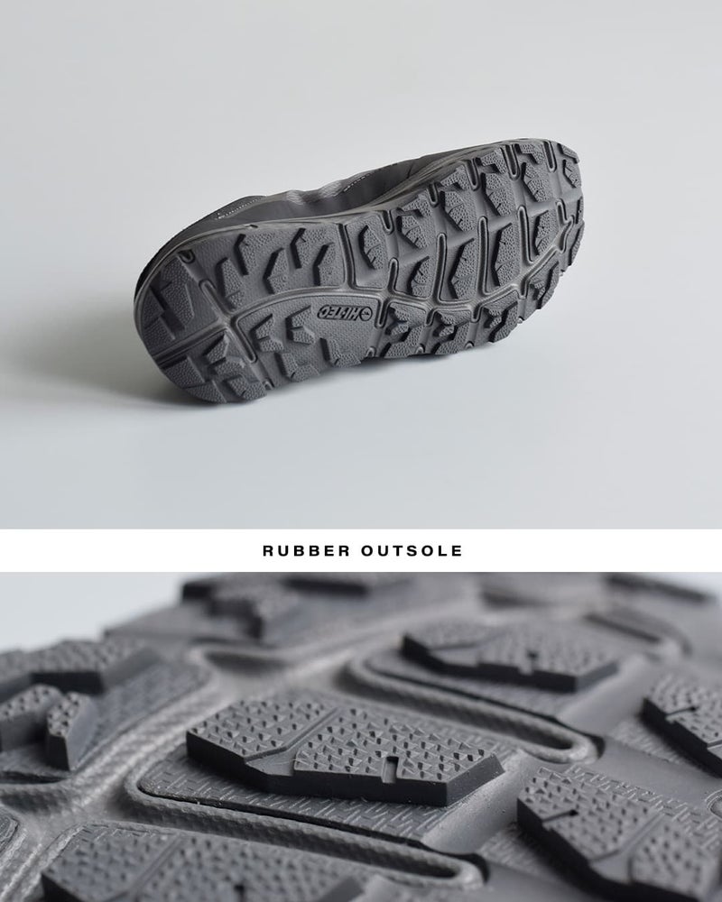 凹凸のあるラバーアウトソールを採用し、優れたグリップ力を発揮。多方向に配置されたトレッドパターンが地面をしっかり捉え、安定した歩行をサポートします。