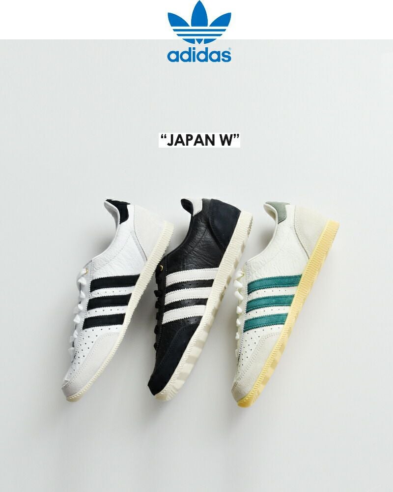 adidas Originals(アディダス オリジナルス)より、ジャパン W レザー ローカット スニーカー “JAPAN W” をご紹介します。歴史を履く。そんな感覚を味わいながら、歩いてみよう。このアディダス ジャパンシューズは、1964年に日本で開催された世界的なスポーツイベントのカタログに掲載されていた、トレーニングシューズの復刻モデル。オリジナルモデルの薄型設計をできるだけ忠実に残し、ダブルステッチのTトゥなど、ユニークなディテールをあしらったデザイン。レトロな雰囲気に、現代風のスタイリッシュなアッパーを搭載して、モダンで洗練された1足に仕上がっています。