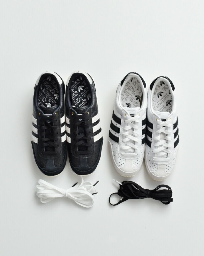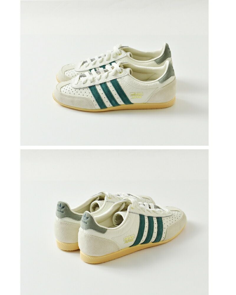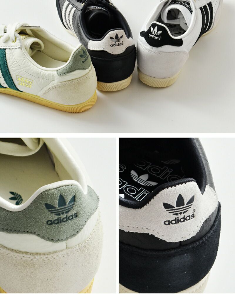 天然皮革を使用したレザーアッパーを使用。天然皮革らしい風合いと、レザーの上質感が魅力です。サイドにゴールドの箔でadidasJAPANのロゴを配置して、高級感をプラス。