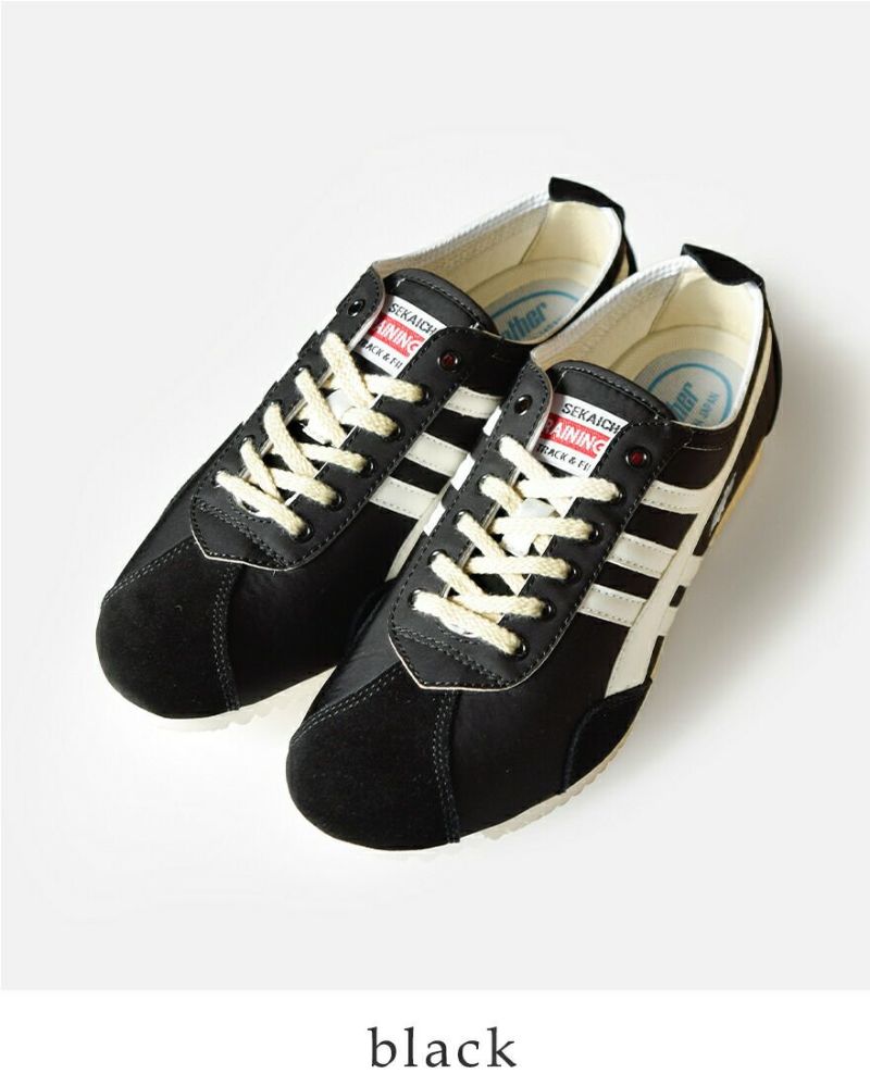 ・アウトソール中央に配した「世界長」のレトロなロゴがアイコニック。